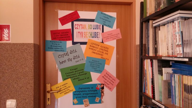 Biblioteka zwróciła się do klasy IV-VI z prośbą o wyłonienie drogą „burzy mózgów” na lekcji wychowawczej jednego, wspólnego dla klasy hasła lub cytatu, zachęcającego do czytania. Na drzwiach biblioteki przygotujemy plakat z wybranymi przez klasy cytatami. Tutaj również datą graniczną jest 7 marca.