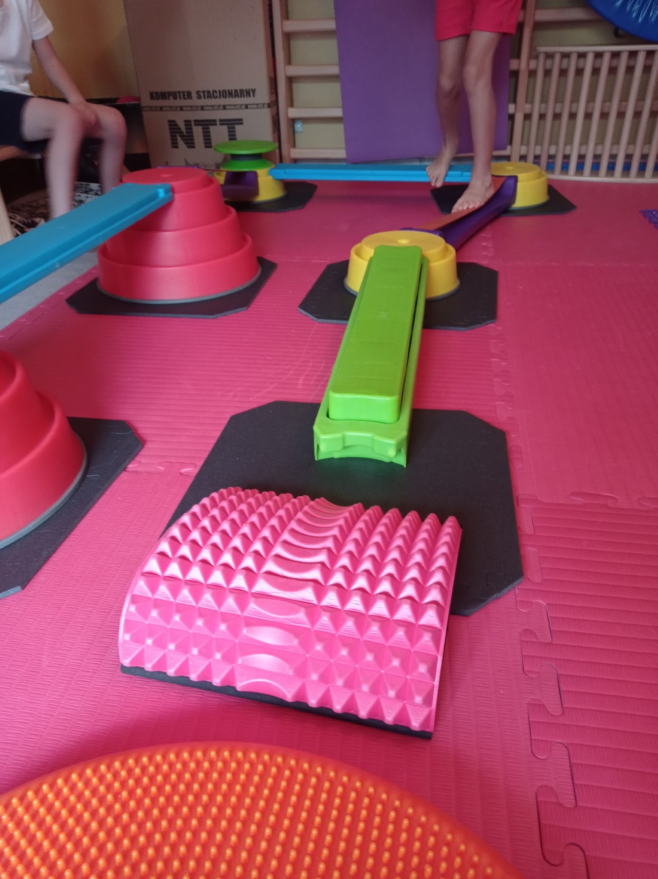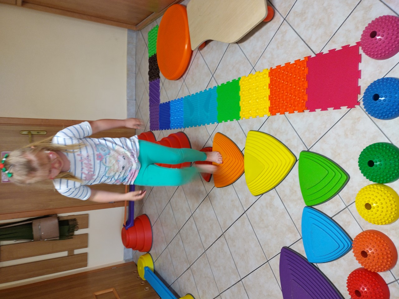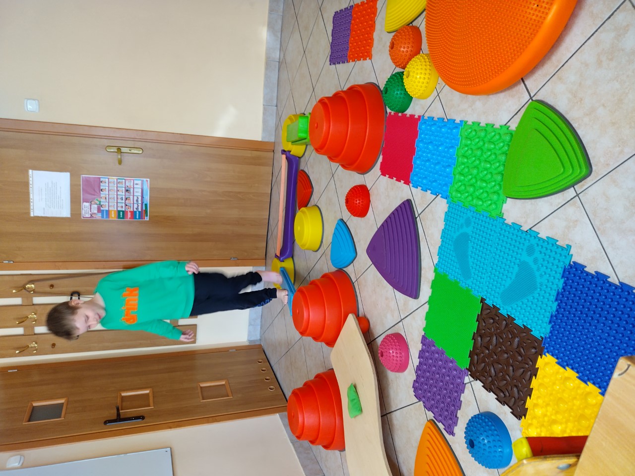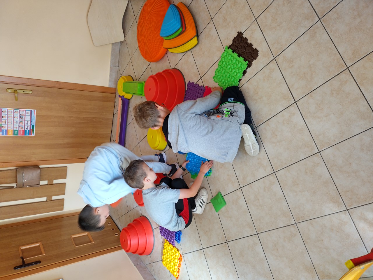 Majowe, ostatnie zadanie z Ogólnopolskiego Projektu „Gramy zmysłami” – to „Ścieżka sensoryczna”, realizowane na wybranych zajęciach logopedycznych, rewalidacyjnych i gimnastyki korekcyjnej.