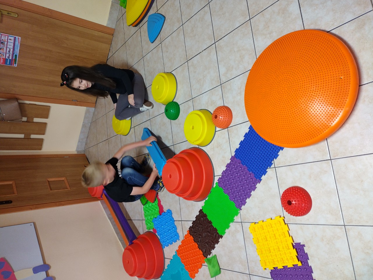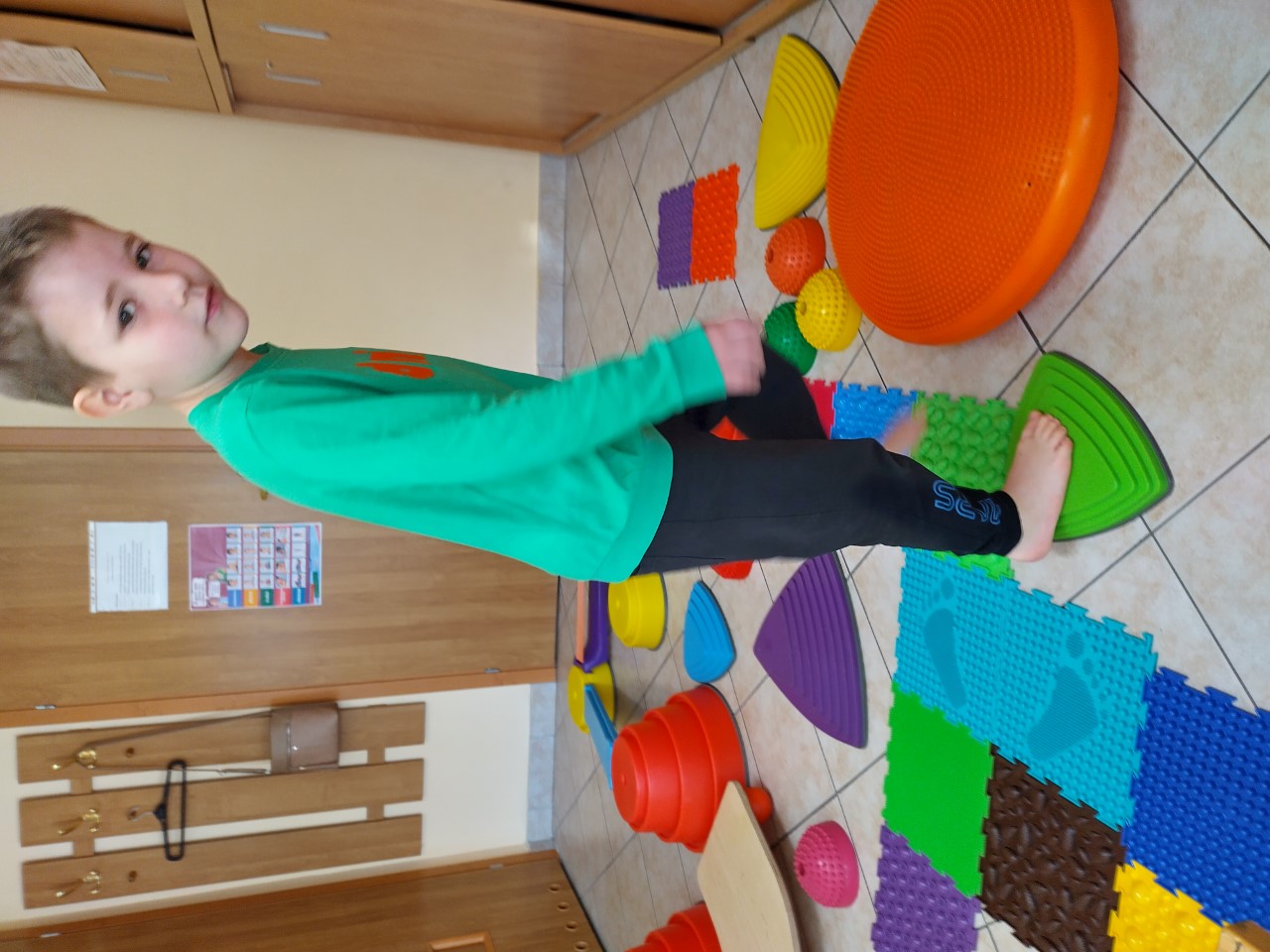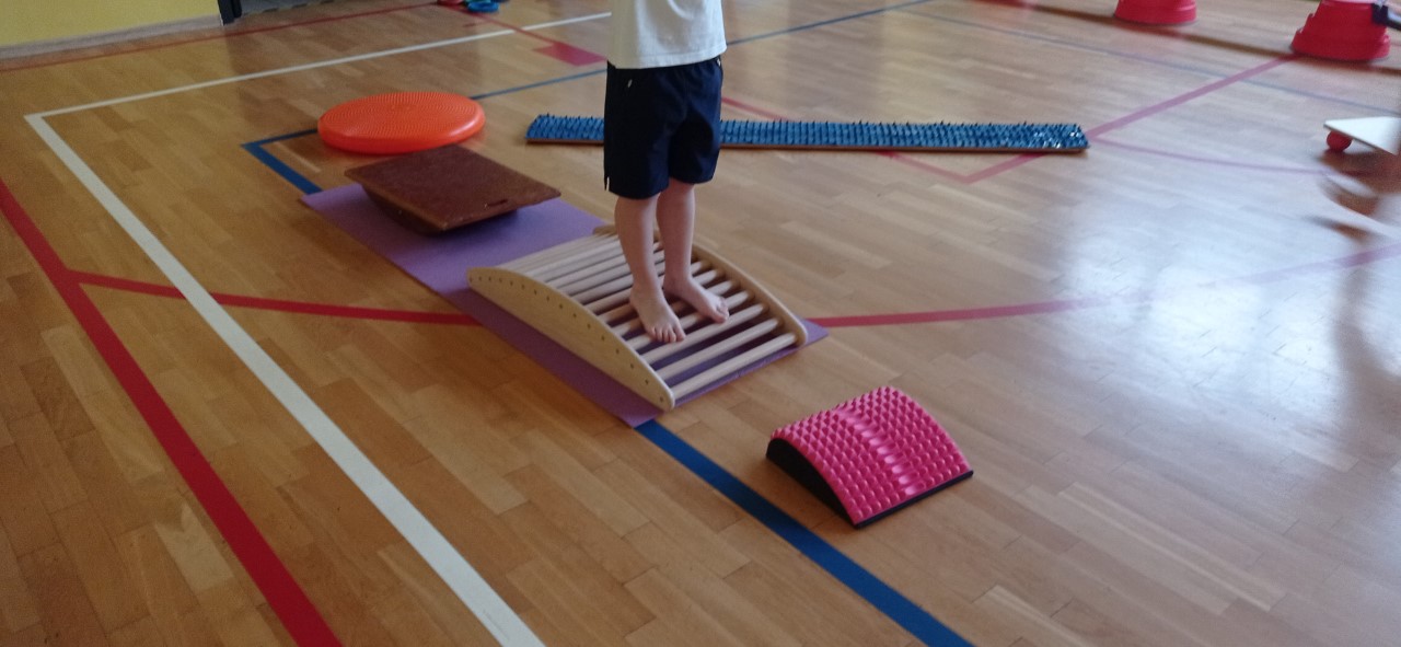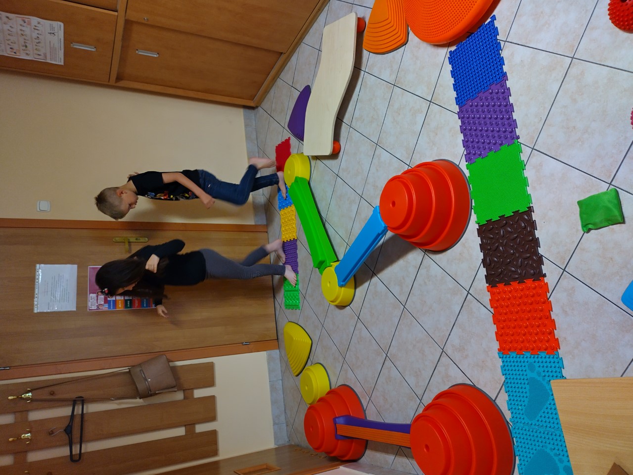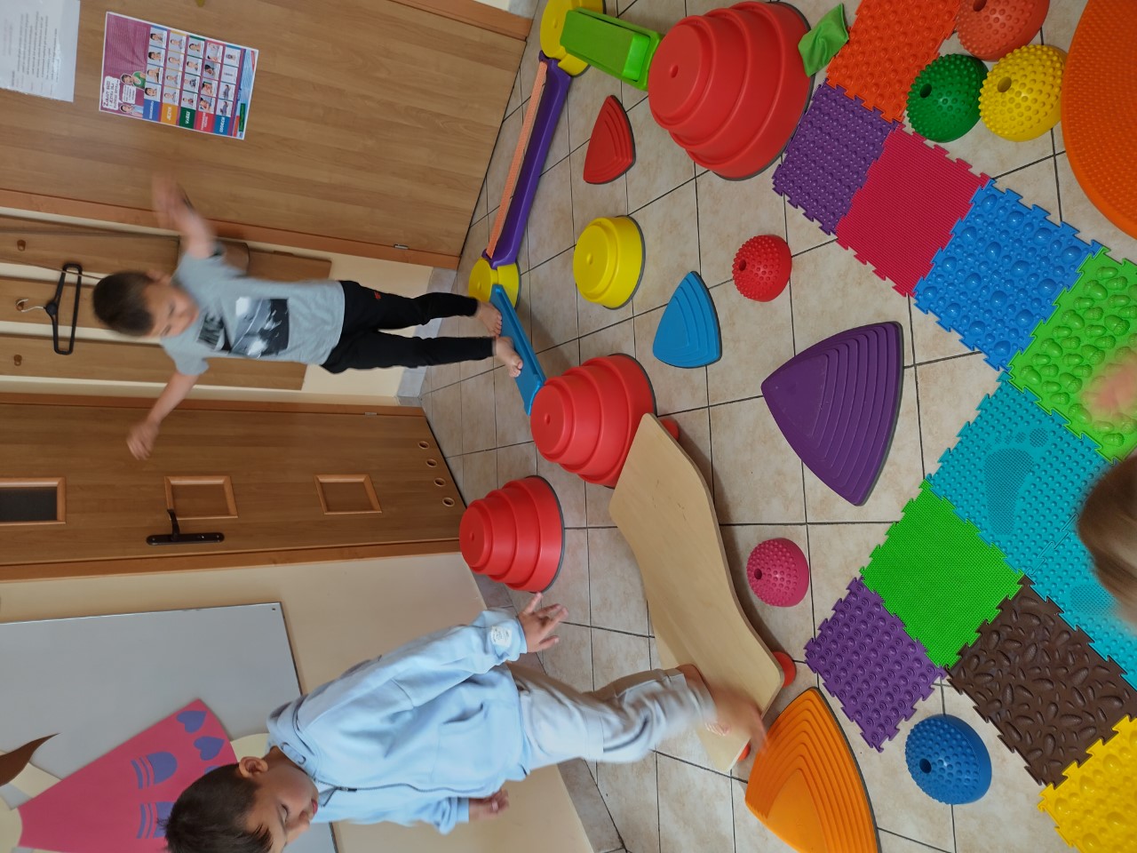 Majowe, ostatnie zadanie z Ogólnopolskiego Projektu „Gramy zmysłami” – to „Ścieżka sensoryczna”, realizowane na wybranych zajęciach logopedycznych, rewalidacyjnych i gimnastyki korekcyjnej.