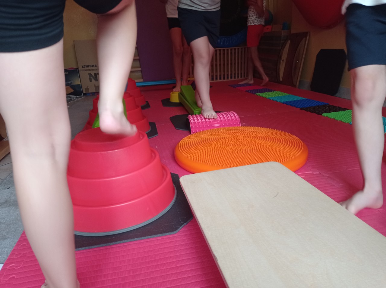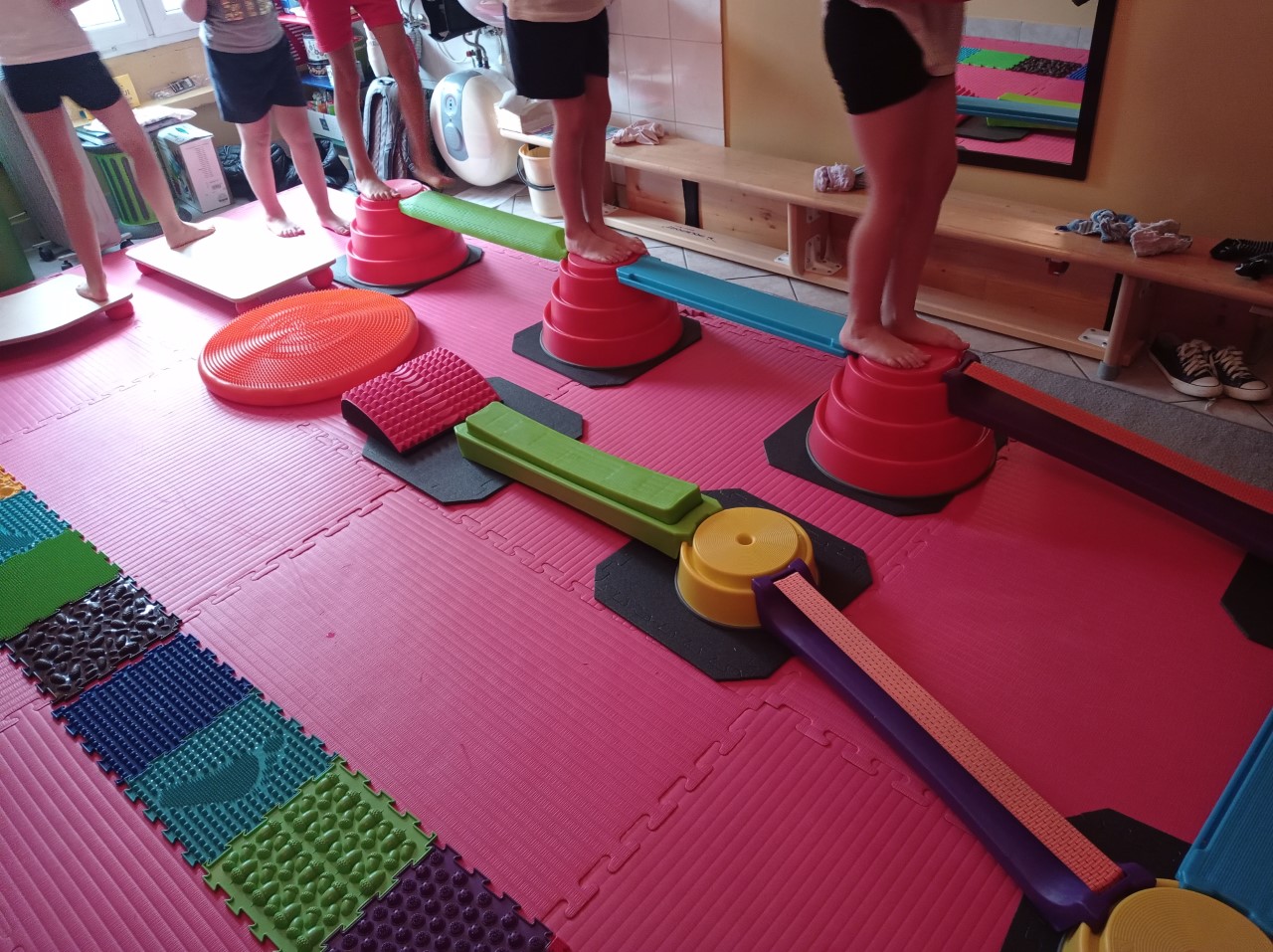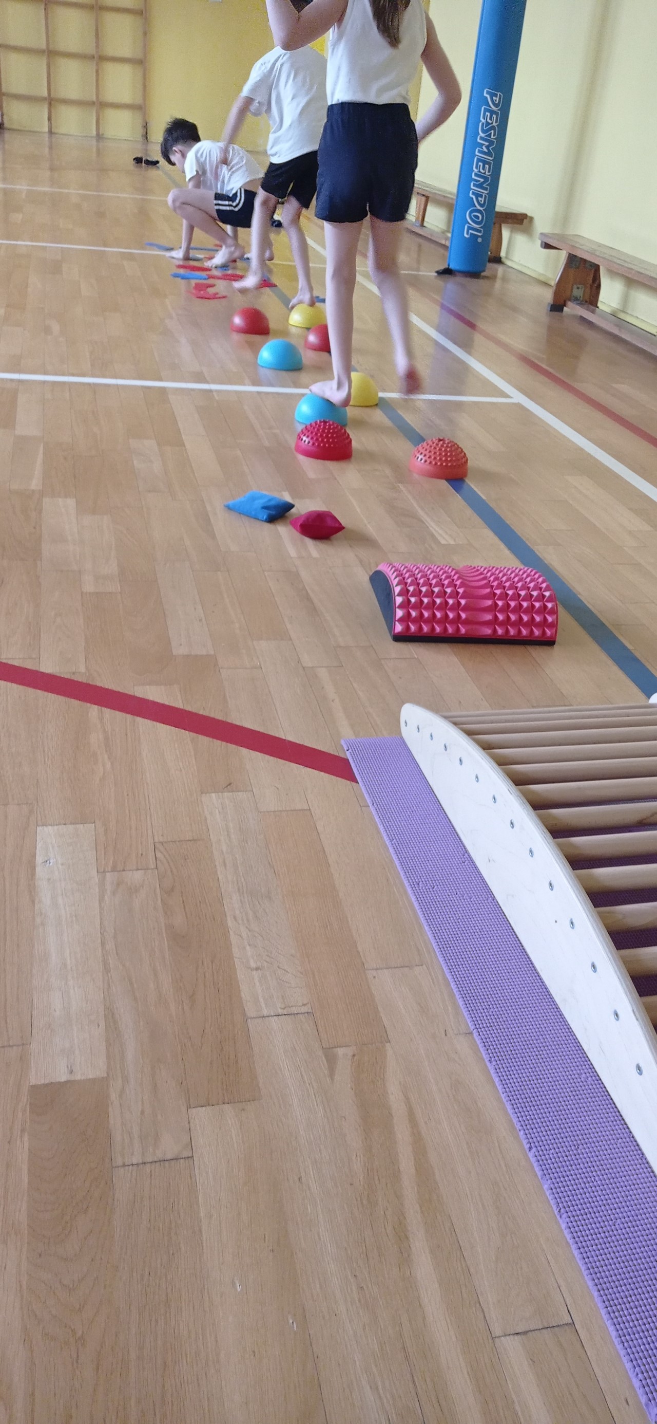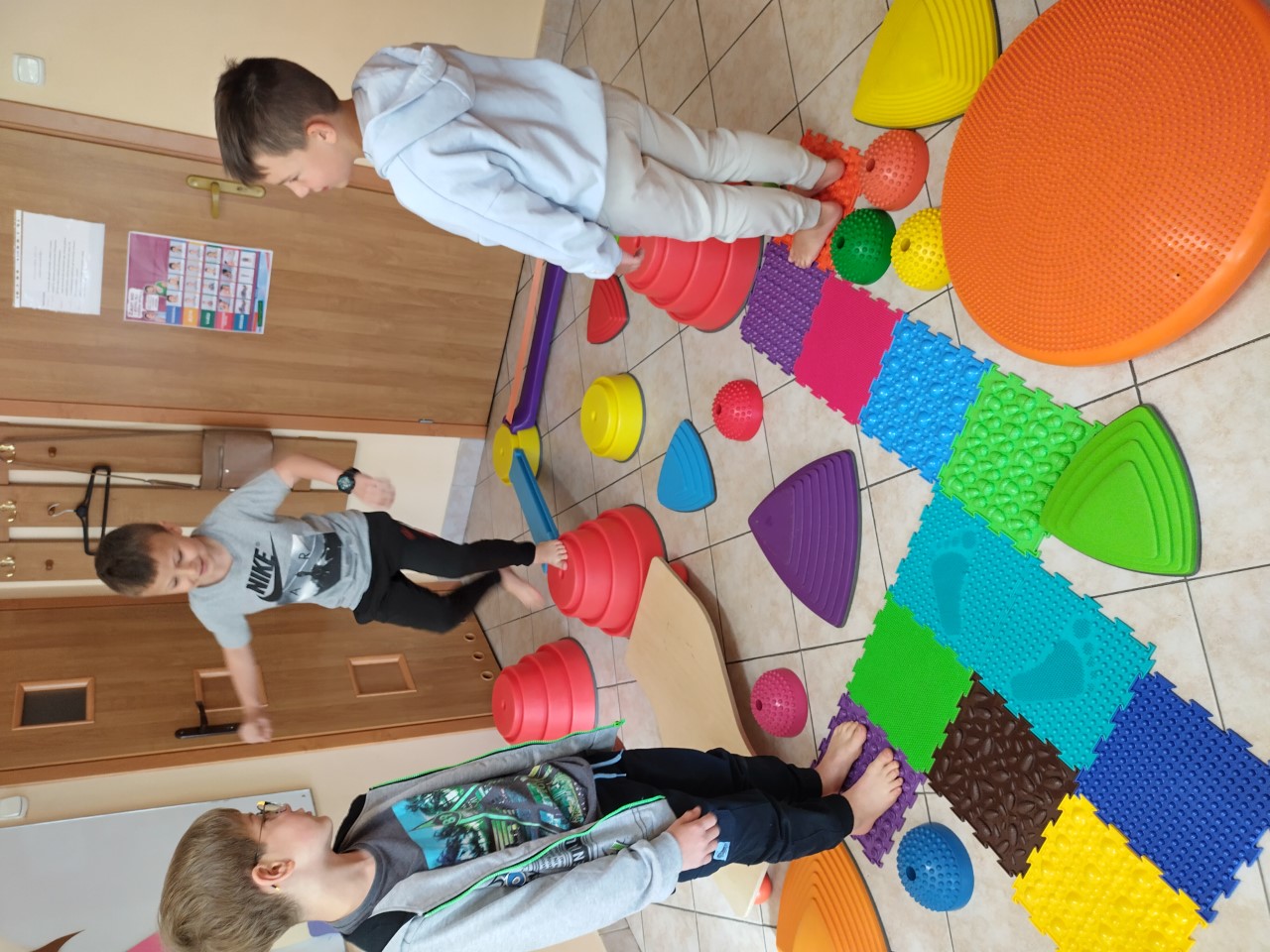 Majowe, ostatnie zadanie z Ogólnopolskiego Projektu „Gramy zmysłami” – to „Ścieżka sensoryczna”, realizowane na wybranych zajęciach logopedycznych, rewalidacyjnych i gimnastyki korekcyjnej.