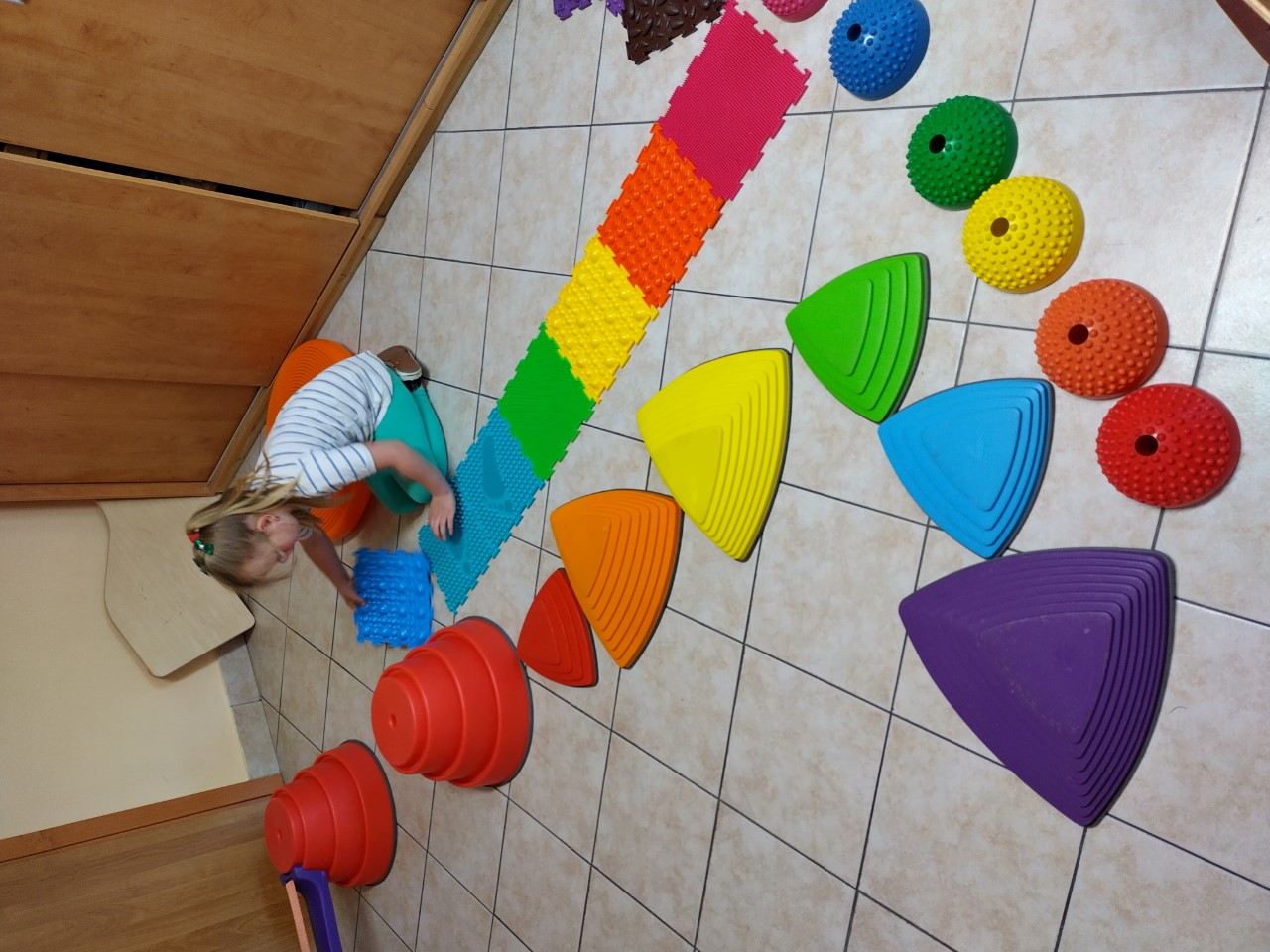Ścieżka sensoryczna to inaczej tor przeszkód wykonany z różnego rodzaju faktur i elementów między innymi twardych, miękkich, delikatnych czy chropowatych. Głównym zadaniem ścieżki sensorycznej jest dostarczenie dziecku różnorodnych bodźców, jak również pobudzenie percepcji wzrokowo – ruchowej i kształtowanie właściwej reakcji na dotyk. Dzieci, które przechodzą przez ścieżkę bosymi stopami lub dotykają dłońmi jej poszczególnych elementów ćwiczą sprawność motoryczną, równowagę, koordynację ruchową, percepcję wzrokową oraz planowanie ruchu. Ścieżka sensoryczna stymuluje receptory znajdujące się w skórze i mięśniach dłoni i stóp do prawidłowego funkcjonowania. Dzieci odbierają dzięki temu więcej wrażeń dotykowych. Zwiększa się zakres ich doświadczeń zmysłowych, a co za tym idzie, poszerza poznanie otaczającego ich świata. Ścieżka jest także doskonałym pomysłem na świetną zabawę z dzieckiem oraz ciekawe spędzanie wspólnego czasu. Najważniejsze zalety ścieżki sensorycznej: • stymulowanie zmysłu dotyku, kształtowanie zdolności właściwej reakcji na dotyk, • wpływ na rozwijanie wielu umiejętności i poprawę zdolności poznawczych, • dostarczanie dziecku zróżnicowanej wiedzy, • rozwijanie kreatywności i wyobraźni, • zaznajamianie z określonymi produktami, strukturami i wielkościami – funkcja edukacyjna, • pomysł na dobrą zabawę i ciekawe spędzanie czasu z dzieckiem.