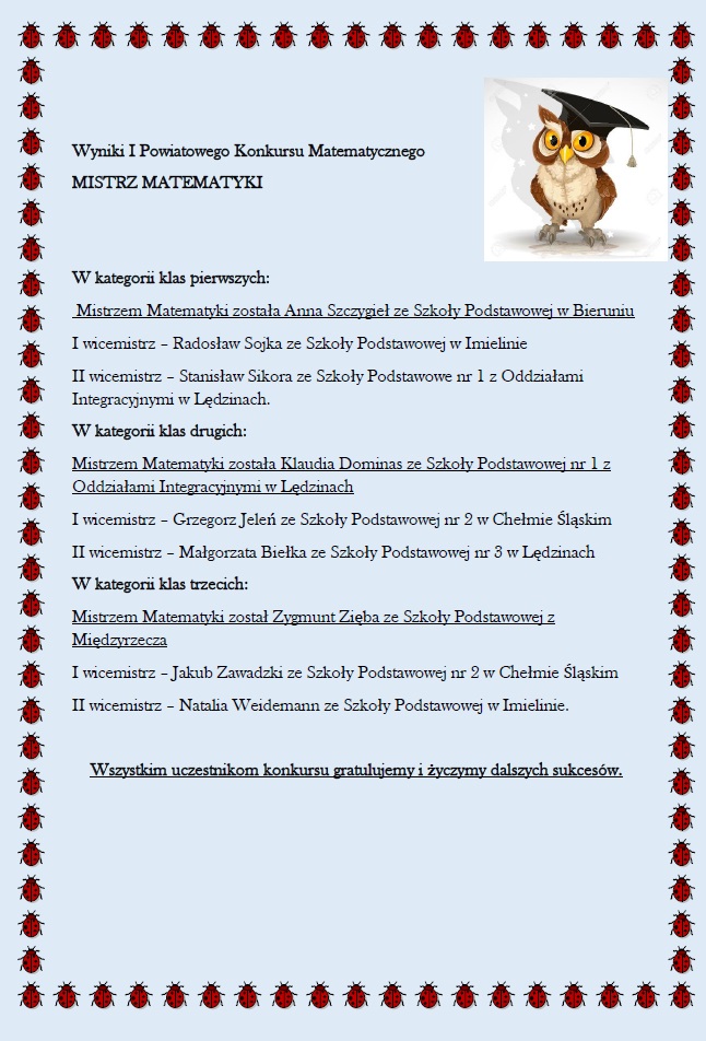 Wszystkim naszym uczennicom/uczniom gratulujemy wspaniałych wyników, uzyskanych w konkursach szkolnych i pozaszkolnych. Życzmy również radosnych i aktywnych przerw, spędzonych na wspólnych zabawach i rozmowach, nie zaś samotnie, w kącie, z telefonem w dłoni.