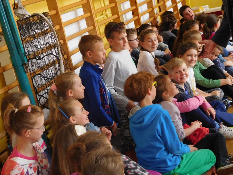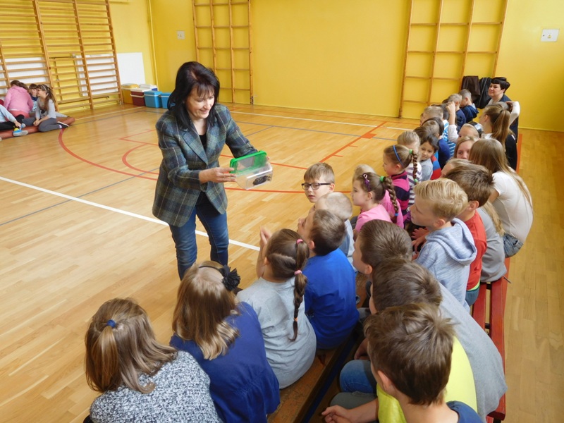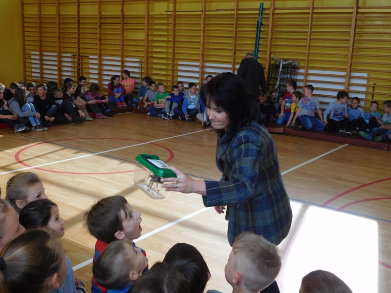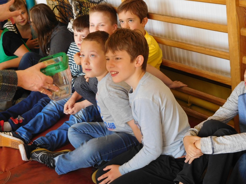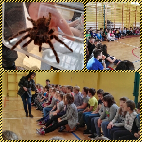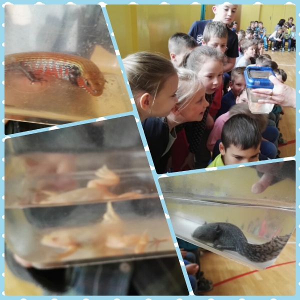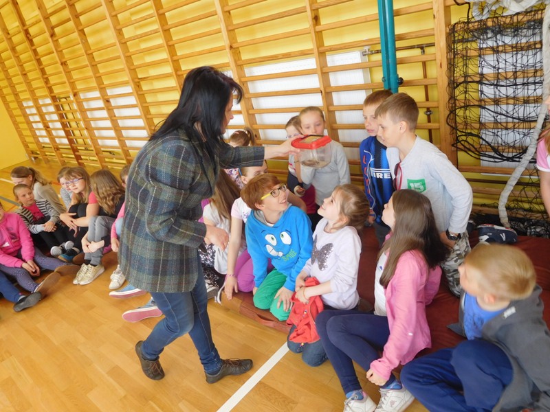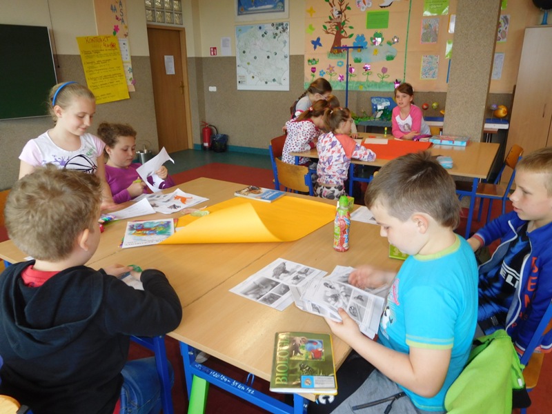 Dnia 16 maja w naszej szkole odbyły się wyjątkowe lekcje z okazji Dnia Matematyki i Przyrody. Trzygodzinny projekt rozpoczął się od „żywej” lekcji przyrody, dzięki której uczniowie wszystkich klas mogli zobaczyć zwierzęta znane dotychczas jedynie ze szkolnych ilustracji. Podczas kolejnych zajęć dzieci realizowały zdania łączące oba przedmioty - pracując grupach układali tangramy, tworzyli plakaty pod hasłem „Człowiek w liczbach”, prezentowali układy w ciele ludzkim, łańcuchy pokarmowe w różnych środowiskach oraz klimatogram na tle krajobrazu, w którym występuje, sklejali różnego rodzaju bryły.