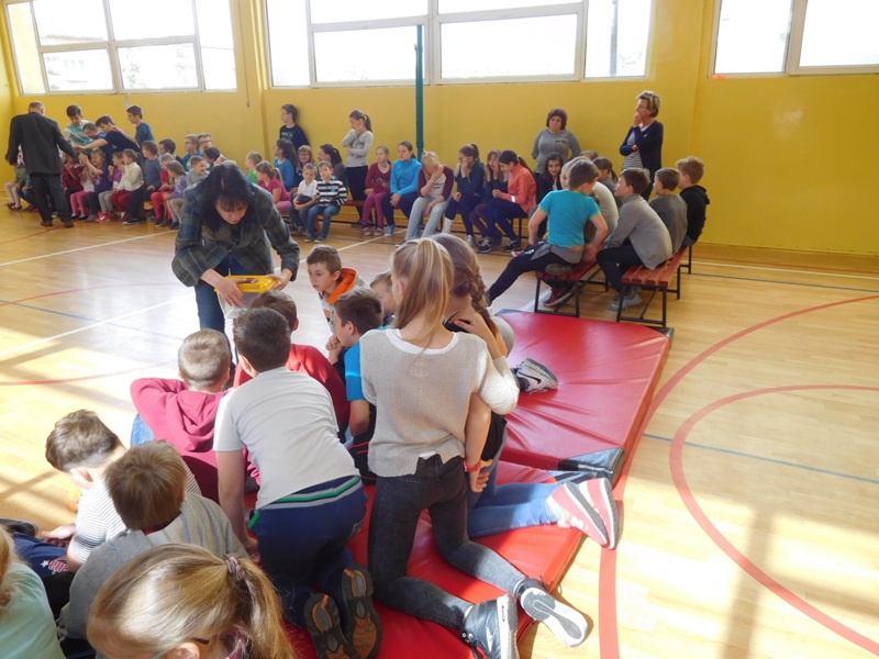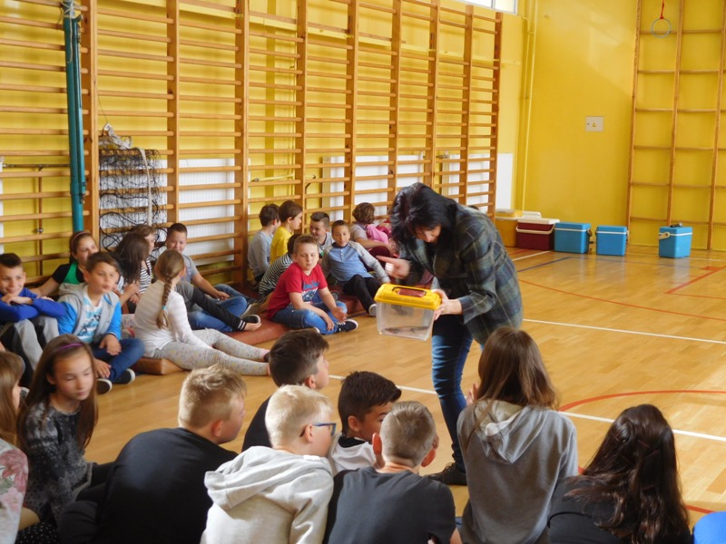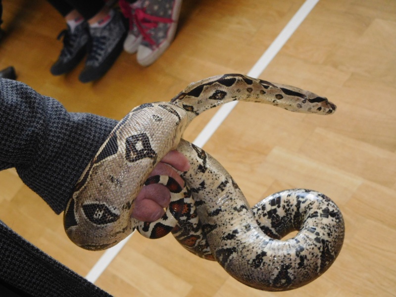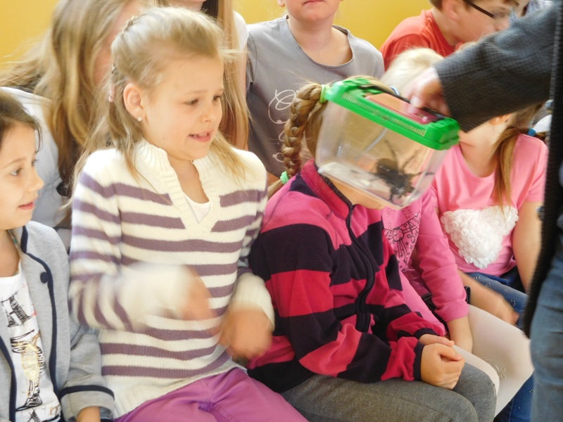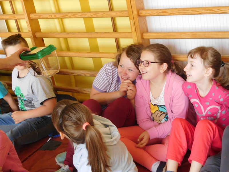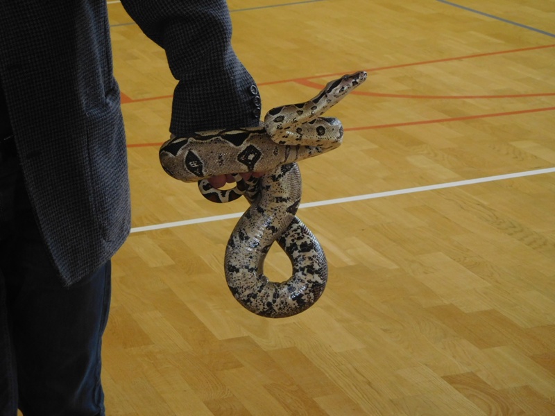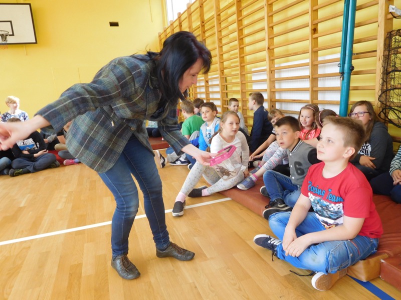 Dnia 16 maja w naszej szkole odbyły się wyjątkowe lekcje z okazji Dnia Matematyki i Przyrody. Trzygodzinny projekt rozpoczął się od „żywej” lekcji przyrody, dzięki której uczniowie wszystkich klas mogli zobaczyć zwierzęta znane dotychczas jedynie ze szkolnych ilustracji. Podczas kolejnych zajęć dzieci realizowały zdania łączące oba przedmioty - pracując grupach układali tangramy, tworzyli plakaty pod hasłem „Człowiek w liczbach”, prezentowali układy w ciele ludzkim, łańcuchy pokarmowe w różnych środowiskach oraz klimatogram na tle krajobrazu, w którym występuje, sklejali różnego rodzaju bryły.