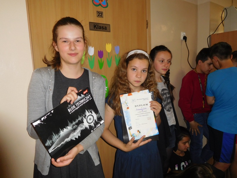 Wszystkie uczestniczki otrzymały pamiątkowe dyplomy i słodkie upominki, laureatki ponadto nagrody książkowe. Nagrodzone uczennice będzie można posłuchać na żywo 18 czerwca podczas Pikniku Rodzinnego z okazji Jubileuszu 50–lecia naszej szkoły, na który już dziś serdecznie zapraszamy całe rodziny.