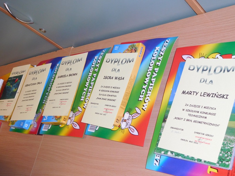 Dnia 17 maja odbył się apel, podczas którego rozdano nagrody za osiągnięcia w konkursach polonistycznych, matematycznych, technicznych i plastycznych. Spotkanie klas IV-VI było również okazją do przypomnienia zapisów zmienionej "Procedury korzystania z telefonów komórkowych".