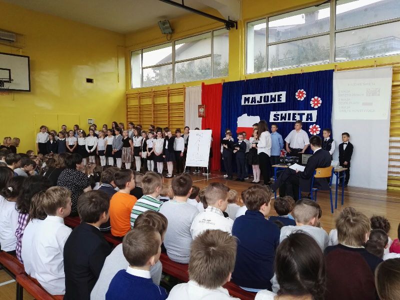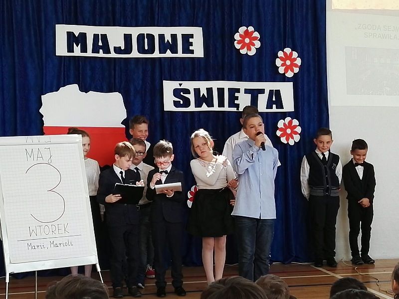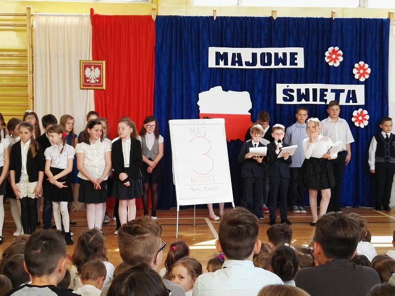 Dnia 29 maja odbyła się w naszej szkole akademia z okazji rocznicy uchwalenia Konstytucji Trzeciego Maja. Uroczystość rozpoczęła się od wprowadzenia pocztu sztandarowego oraz odśpiewania "Mazurka Dąbrowskiego". Następnie uczniowie przedstawili program artystyczny, będący montażem słowno-muzycznym, składającym się z krótkiej inscenizacji nawiązującej do historii uchwalenia Konstytucji Trzeciego Maja. Na zakończenie głos zabrała Pani Dyrektor Dagmara Kupczyk, która zachęciła do wywieszenia z okazji świąt majowych biało-czerwonej flagi. Zachęcamy do obejrzenia nagrań z akademii, które opublikowane zostaną na naszym szkolnym Facebooku.