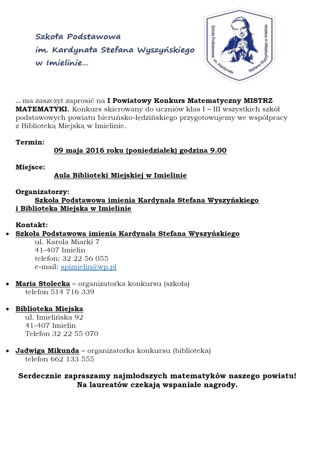 I POWIATOWY KONKURS MATEMATYCZNY MISTRZ MATEMATYKI