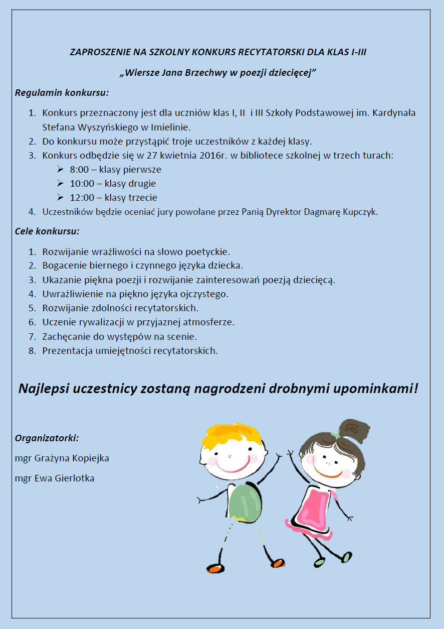 SZKOLNY KONKURS RECYTATORSKI KLAS I-III