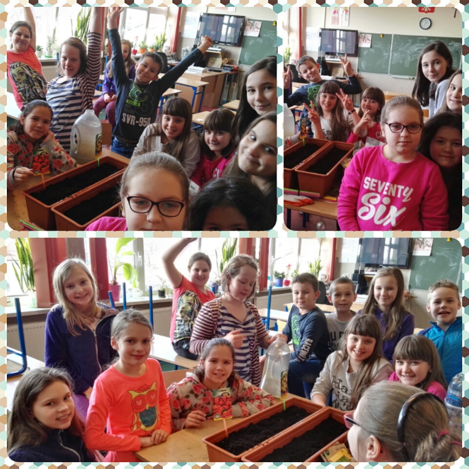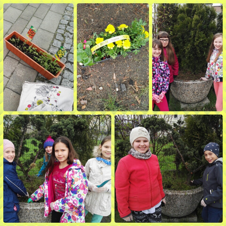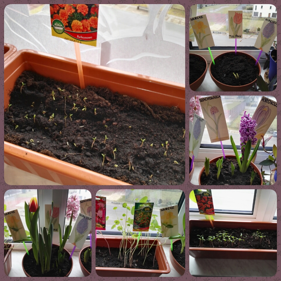 Członkowie szkolnego koła przyrodniczego z klas IV "a" i IV "b" upiększyli otoczenie naszej szkoły, sadząc samodzielnie wyhodowane kwiaty. Bardzo nas cieszą takie akcje!