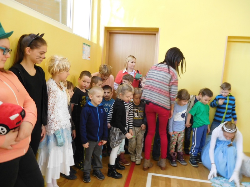 Dnia 21 marca gościliśmy w naszej szkole podopiecznych Przedszkola Miejskiego w Imielinie. Dzieci wraz z wychowawczyniami zwiedzały szkolne wnętrza pod przewodnictwem pań: Beaty Balickiej i Małgorzaty Syrek. Nauczycielki wspomagał samorząd uczniowski, który na tę szczególną okazję wcielił się w postaci z filmów i baśni. Przedszkolaki miały możliwość zobaczyć gabinet pani Dyrektor, Dagmary Kupczyk, sekretariat, bibliotekę szkolną, świetlicę, salę gimnastyczną, gabinet pielęgniarki, kuchnię i jadalnię. Wzięły również udział w lekcjach otwartych w klasie I "c" oraz I "d". Uwieńczeniem wycieczki po szkole był udział w wiosennym korowodzie klas I-III i pożegnanie Marzanny. Dyrekcji przedszkola, wychowawczyniom, dzieciom, a także rodzicom bardzo dziękujemy za przyjęcie zaproszenia na nasz Dzień Otwarty. Chyba wszyscy naocznie przekonali się, że nie taka szkoła straszną , jak ją malują (w telewizorze) ;)