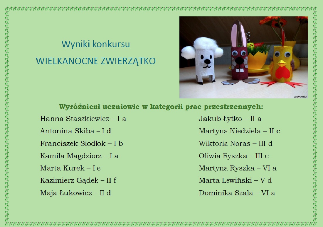 WIELKANOCNE ZWIERZĄTKO - WYNIKI KONKURSU