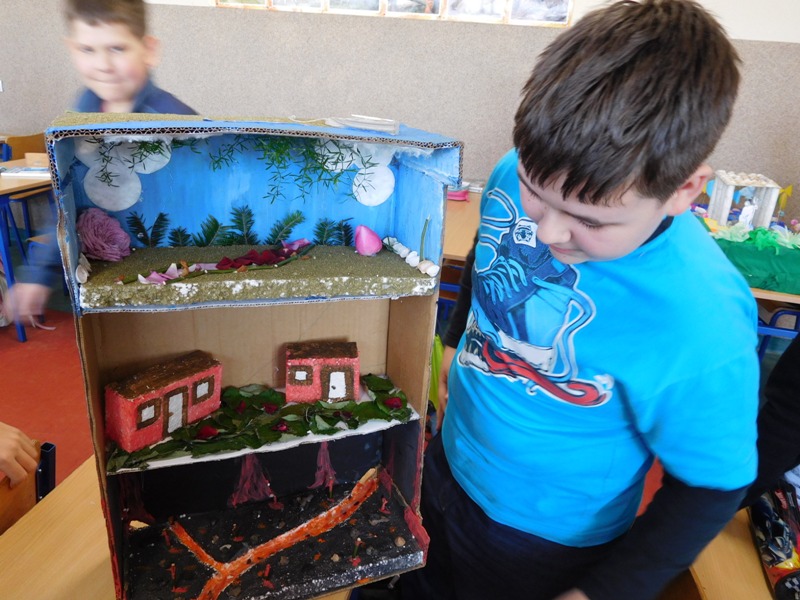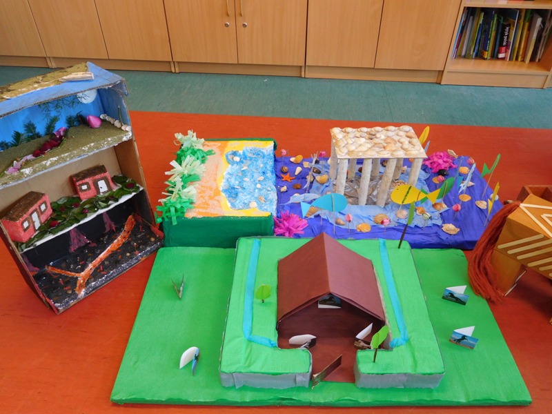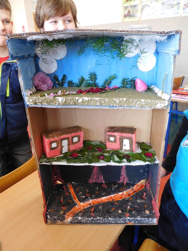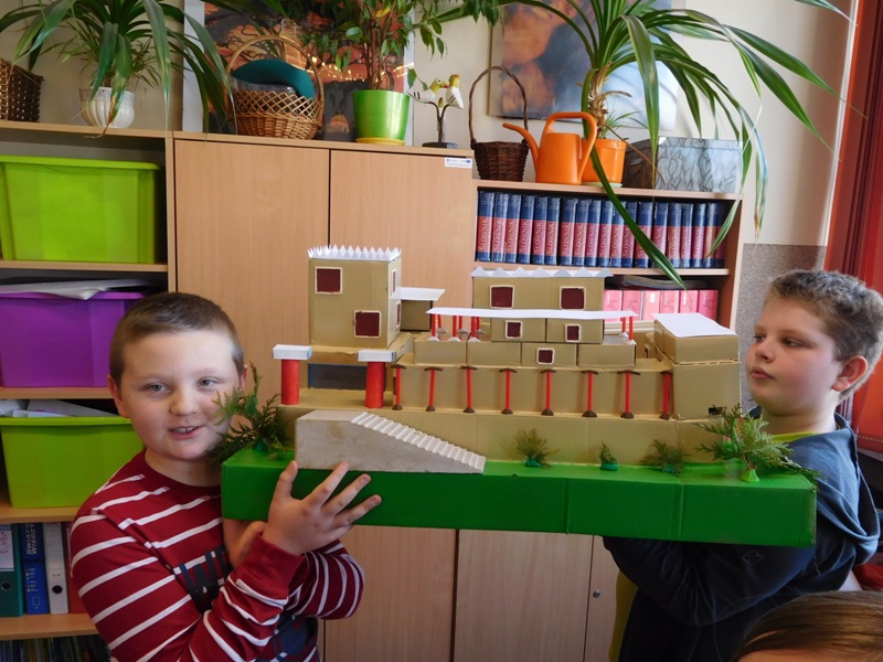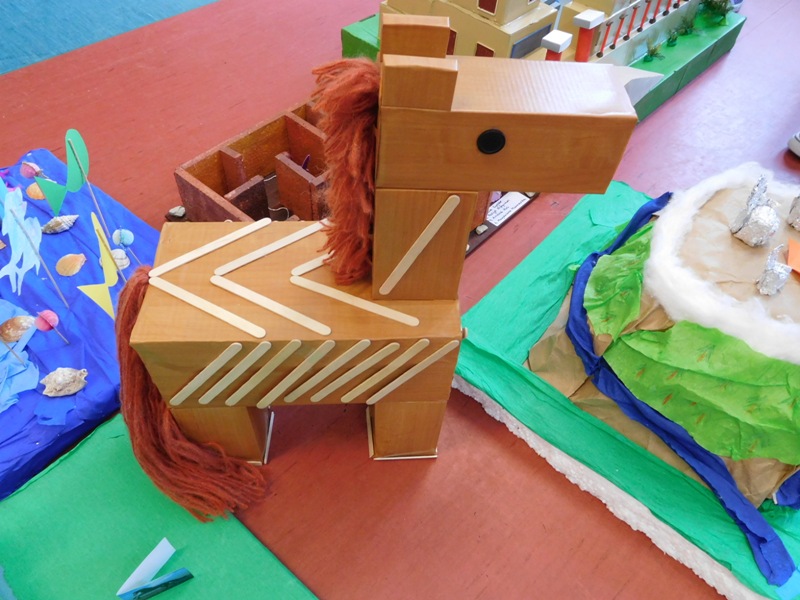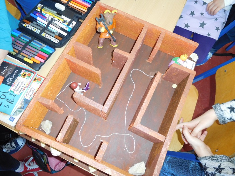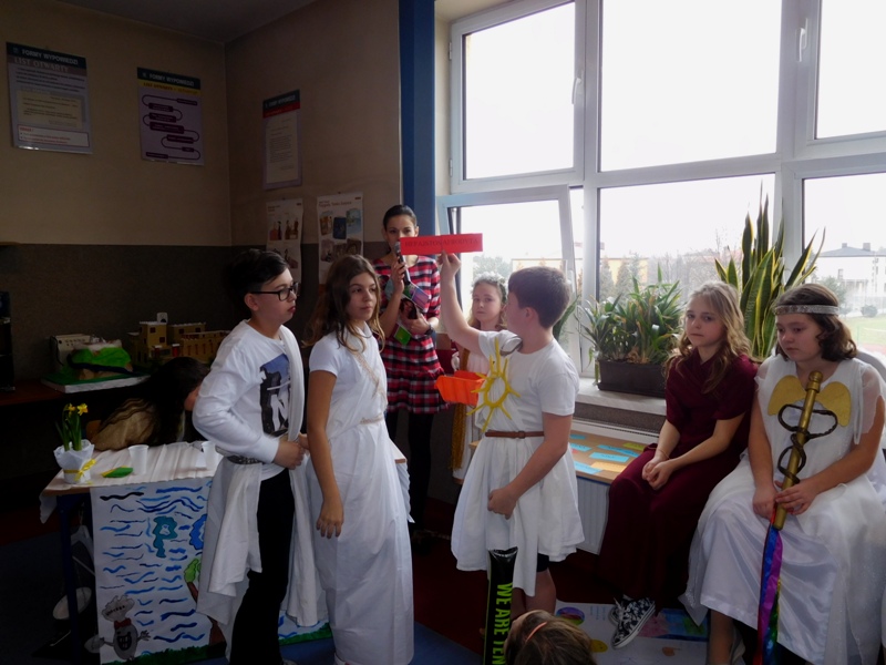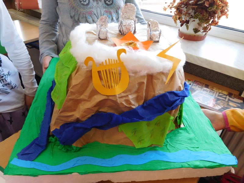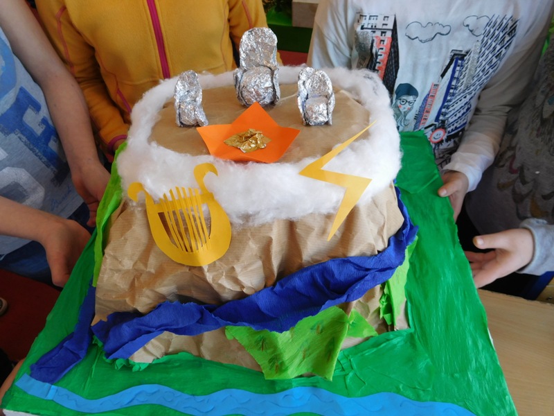 W lutym klasa V "d" była zaangażowana w realizację projektu międzyprzedmiotowego "Mity ożywają dzięki wyobraźni". Pracując indywidualnie i zespołowo, uczniowie wykonali albumy mitologiczne, plakaty ilustrujące cztery żywioły, a także makiety: góry Olimp, Hadesu, labiryntu Minotaura, pałacu Minosa, królestwa Posejdona, stajnię Augiasza oraz konia trojańskiego. Piątoklasiści angażując się w projekt, nie tylko wzbogacili swoją wiedzę na temat wierzeń starożytnych Greków, greckiej kultury, literatury, sztuki i historii, ale również zmierzyli się wyzwaniem jakie stanowi praca w grupie. Podsumowanie projektu i prezentacja artefaktów odbędzie się dnia 8 marca br. (wtorek) podczas szkolnego turnieju wiedzy mitologicznej "Wciąż o Ikarach głoszą".