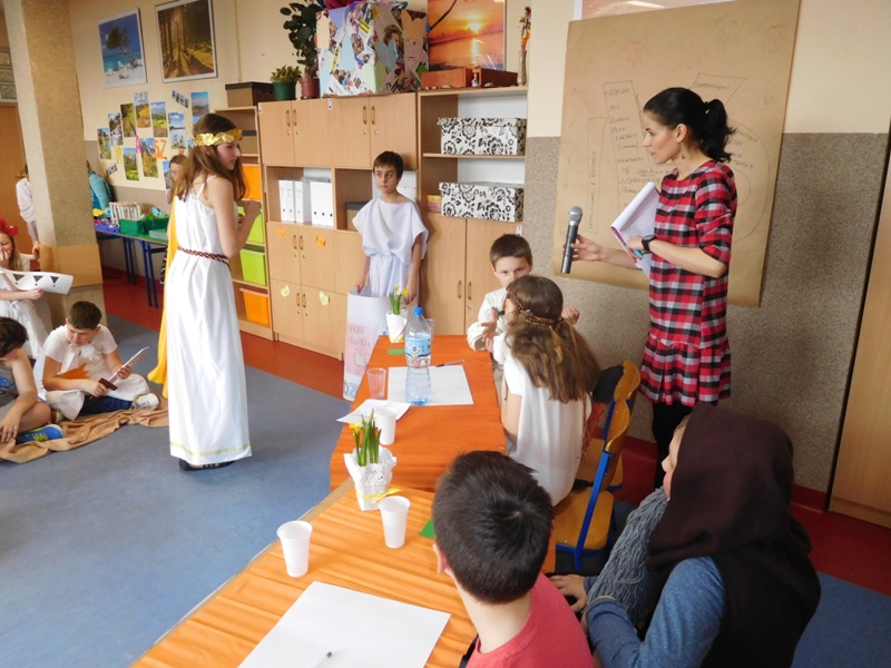Lekcje mitologiczne cieszą się wielką sympatią piątoklasistów. Bogowie, którzy zachowują się jak ludzie, waleczni, piękni herosi oraz przedziwne potwory inspirują uczniowską wyobraźnię i zachęcają do wędrówek po starożytnej Grecji.