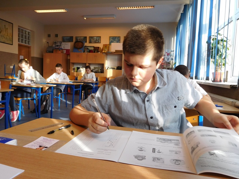 Dnia 6 listopada 2015 r. odbył się w naszej szkole Kuratoryjny Konkurs Przedmiotowy z Matematyki. W etapie szkolnym wzięli udział uczniowie i uczennice klas szóstych. Przez 90 minut zmagali się z zestawem konkursowym, który składał się z: zadań zamkniętych, zadań otwartych, zadań wielokrotnego wyboru, zadań na dobieranie, zadań typu prawda – fałsz, zadań z „luką” oraz… krzyżówki.