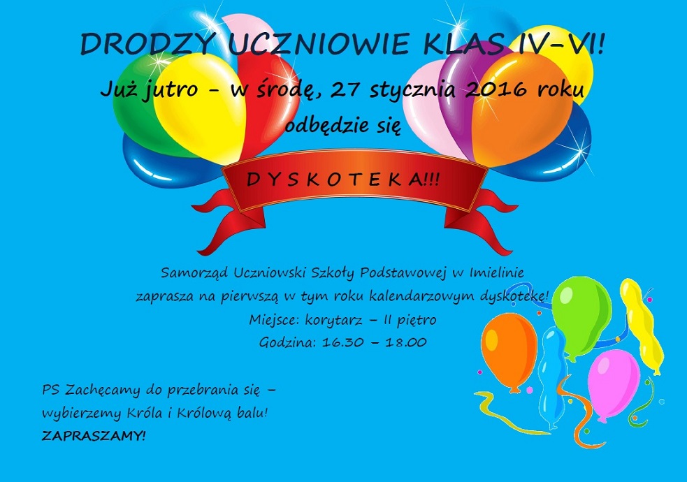 UWAGA: Wejście na dyskotekę tylko za okazaniem ważnej, podpisanej przez Rodzica, zgody!