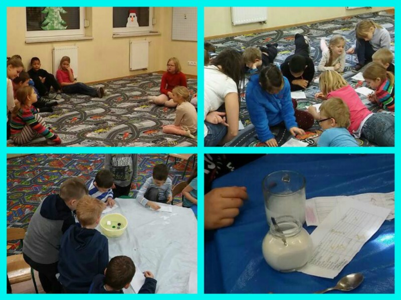 Obchodziliśmy Dzień Górnika - świetlicę odwiedził górnik w pełnym umundurowaniu i opowiadał, jak wygląda praca w kopalni. Dzieci wystąpiły przed gościem, śpiewając tradycyjne śląskie piosenki. Zawitał do nas również Św.Mikołaj, którego podopieczni świetlicy powitali z wielką radością. Odbył się konkurs na najpiękniejszą kartę na Boże Narodzenie oraz drugi, dotyczący wartościowego odżywiania, "Zdrowa żywność na talerzu". Ogłosiliśmy akcję charytatywną dla dzieci z Hospicjum - zbieramy czekolady (dołączcie się!:) Odbyła się świetlicowa wigilia - w tym dniu uroczyście zgromadziliśmy się przy stole, łamiąc się opłatkiem oraz kolędując. Każdego dnia prowadzimy zajęcia: plastyczne, ruchowe, taneczne, a kiedy odwiedzają nas studentki Uniwersytetu Śląskiego z grupy "Projektor" eksperymentujemy i konstruujemy!