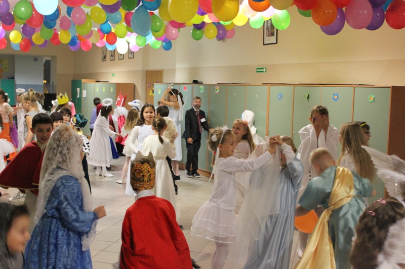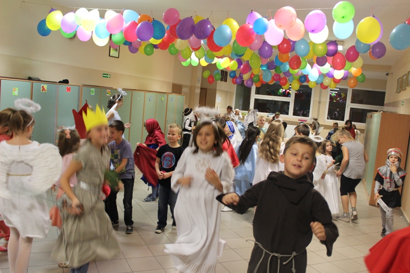 W czwartek 29 października w naszej szkole zorganizowano BAL WSZYSTKICH ŚWIĘTYCH, w którym wzięło udział 99 uczniów. Na balu uczniowie poprzebierani byli za dowolne postacie biblijne, świętych lub anioły. W czasie balu oprócz wspólnych tańców odbyły się liczne konkursy, a na zakończenie dokonano wyboru na najatrakcyjniejsze przebrania oraz wybrano Królową i Króla balu.