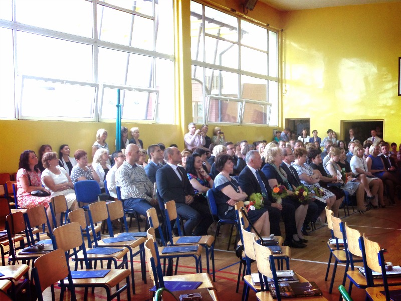 Uroczysta akademia po?egnalna z udzia?em w?adz miasta rozpocz??a si? o 10:30. Wr?czone zosta?y ?wiadectwa oraz nagrody ksi??kowe za osi?gni?cia w nauce, prac? w samorz?dzie uczniowskim oraz w poczcie sztandarowym. Burmistrz Miasta Imielin, Pan Jan Chwi?dacz, oraz Przewodnicz?ca Rady Miasta, Pani Bernadeta Ficek, dodatkowo uhonorowali uczniów/uczennice, którzy uzyskali ?redni? powy?ej 5,0. Specjalne wyró?nienie otrzyma?a Natalia Mondry z klasy VI „c”, która w minionym roku szkolnym zdoby?a tytu? laureatki w kuratoryjnym Konkursie Przedmiotowym z J?zyka Polskiego oraz tytu? finalistki w Konkursie Przedmiotowym z Matematyki. Pani Dyrektor Gabriela Szolczewska wraz z wychowawcami klas VI: Urszul? Haber, Gabriel? Iwanek-Wilk oraz Markiem Pi?k? przekaza?a na r?ce rodziców szóstoklasistów listy gratulacyjne oraz podzi?kowania za prac? na rzecz szko?y. Wyst?pi?a równie? Pani Aldona Ficek – przewodnicz?ca Rady Rodziców – która podzi?kowa?a za 6-letni? edukacj? i wychowanie dzieci. G?os zabra? tak?e pan burmistrz, który pochwali? szko?? za wysoki poziom nauczania, za? na r?ce Pani Gabrieli Szolczewskiej z?o?y? podzi?kowania za 6-letnie sprawowanie funkcji dyrektora szko?y.