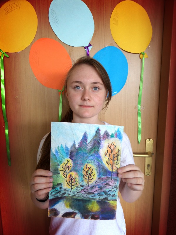 Serdecznie gratulujemy Hannie Ma¶lance, uczennicy klasy VI "a", która w Powiatowym Konkursie Plastycznym "Motyle i tyle" zorganizowanym przez Bieruński O¶rodek Kultury zdobyła wyróżnienie. Hania wykonuje prace, wykorzystuj±c wiele technik plastycznych, a jej inspiracje s± bardzo różnorodne. Od dwóch lat jest aktywn± członkini± szkolnego koła plastycznego "Po-tworzymy".