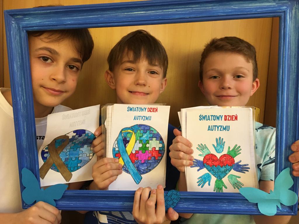 Symbolem solidarności z „autystami” jest kolor niebieski. Dlatego w tym dniu ubraliśmy się na niebiesko. Ponadto oglądaliśmy filmy edukacyjne, prezentacje. Rozmawialiśmy o odczuciach, emocjach i życiu osób z autyzmem. Zrobiliśmy plakaty, młodsze dzieci kolorowały karty pracy. Klasy 3 zrobiły wielki napis AUTYZM na hali sportowej.