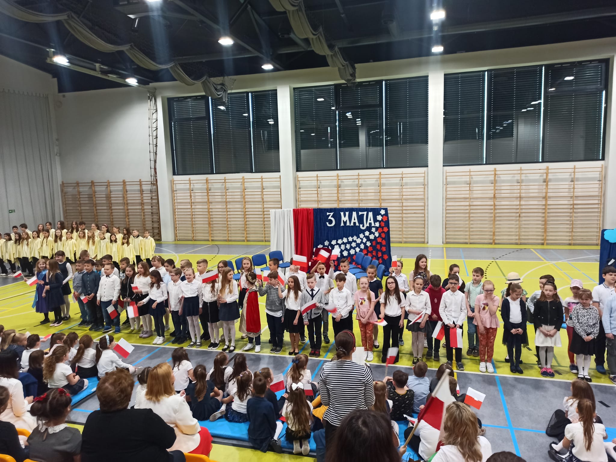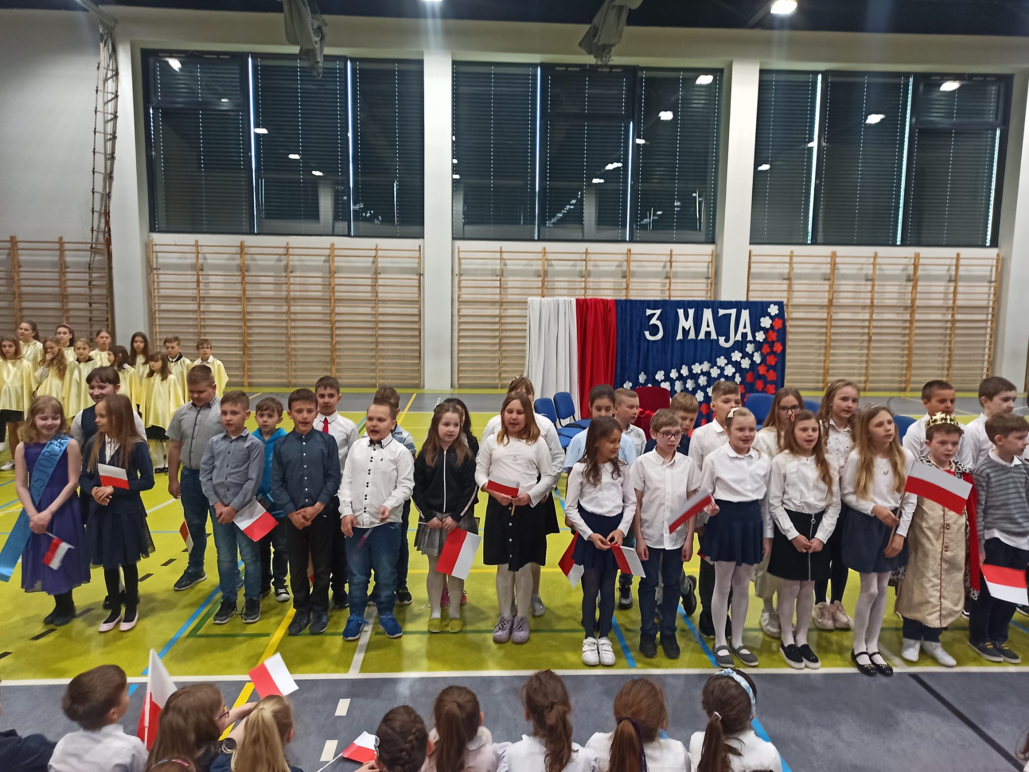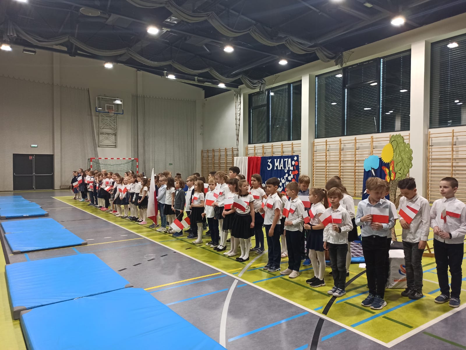 Z okazji tych ważnych dni, klasy młodsze 1-3 oraz „Koralinki” przygotowały część artystyczną upamiętniającą te święta, która odbyła się po uroczystym odśpiewaniu hymnu narodowego przy udziale pocztu sztandarowego.