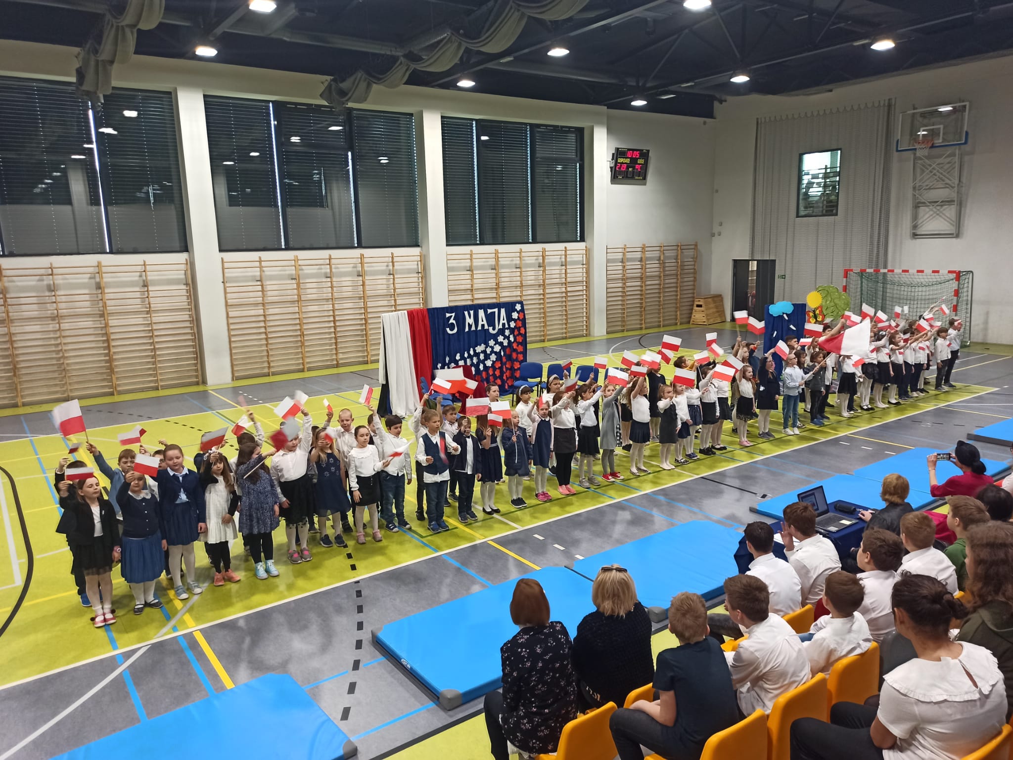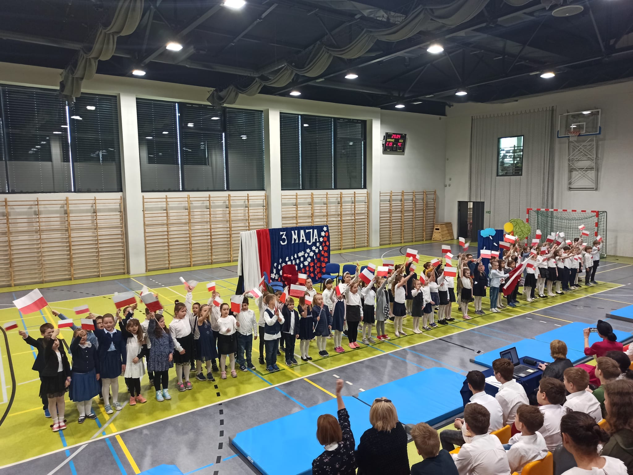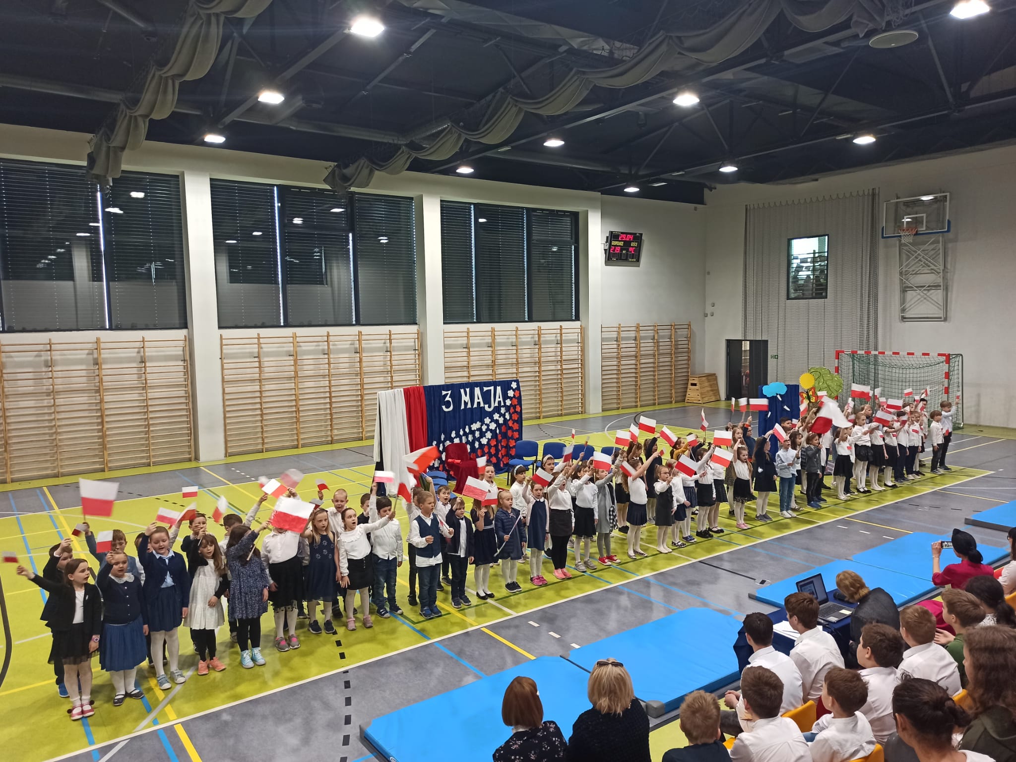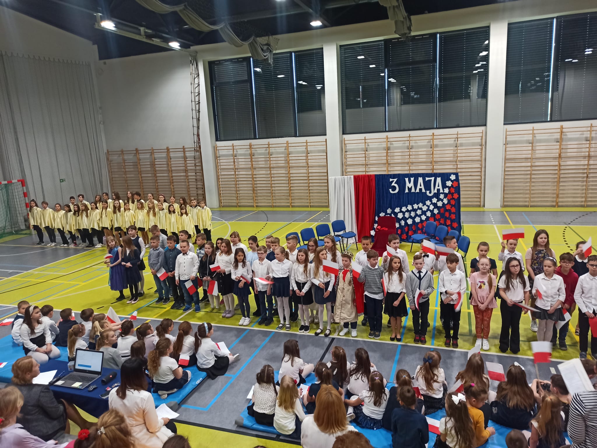 Z okazji tych ważnych dni, klasy młodsze 1-3 oraz „Koralinki” przygotowały część artystyczną upamiętniającą te święta, która odbyła się po uroczystym odśpiewaniu hymnu narodowego przy udziale pocztu sztandarowego.