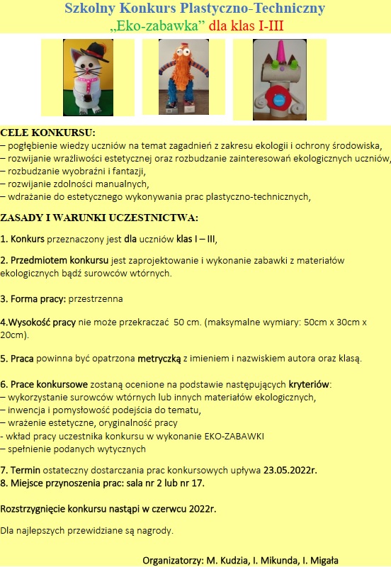 Szkolny Konkurs Plastyczno-Techniczny „Eko-zabawka” dla klas I-III