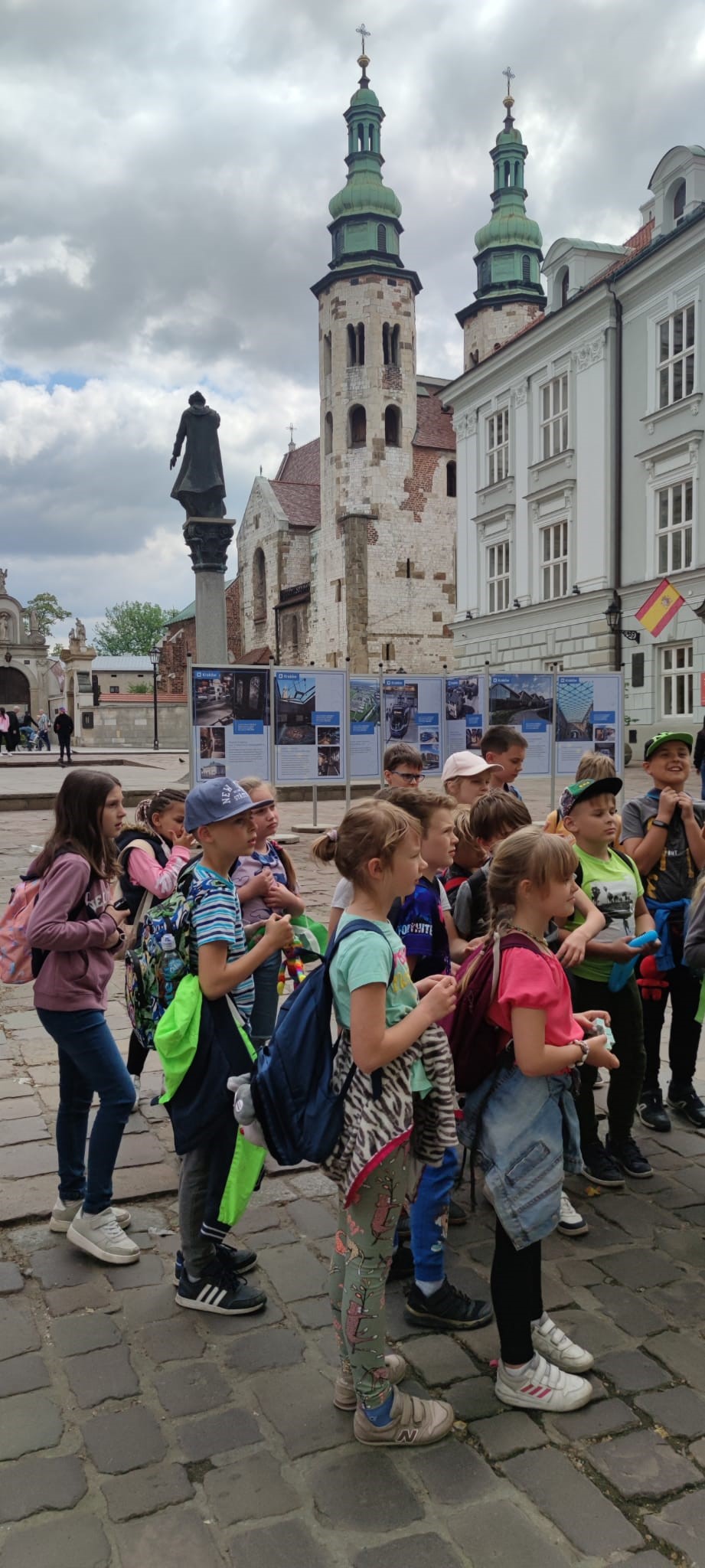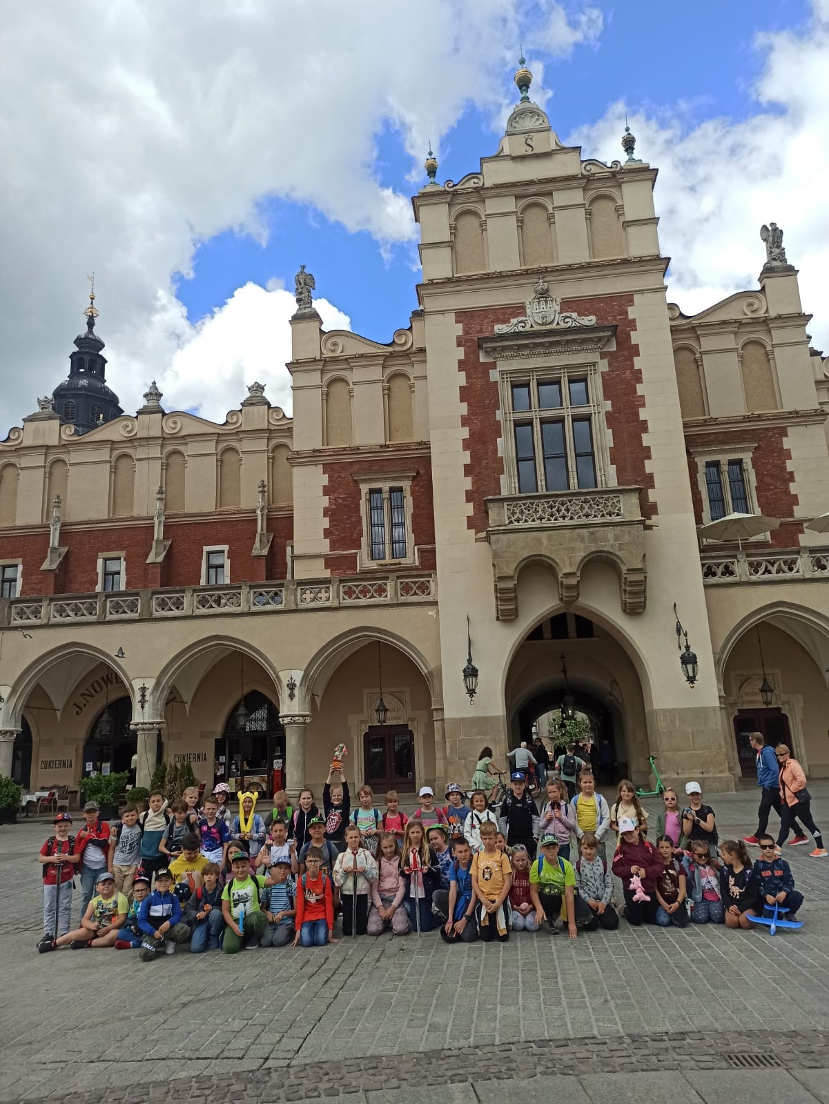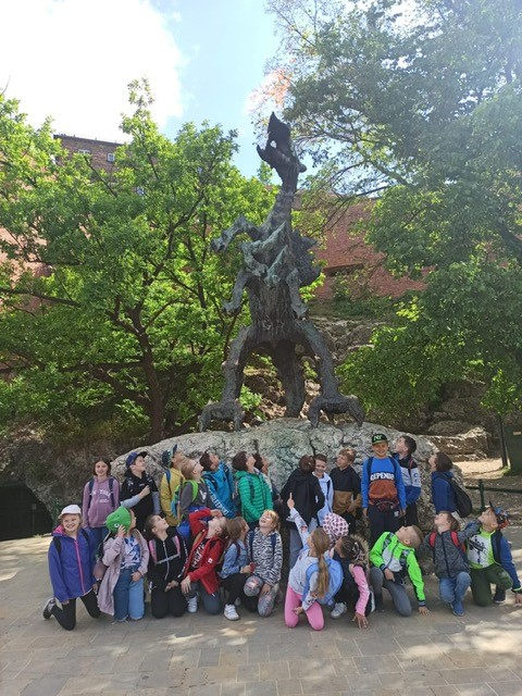 Uczniowie klas I-III Szkoły Podstawowej nr 2 im. Kard. Stefana Wyszyńskiego w Imielinie 23 maja 2022r. skorzystali z przedsięwzięcia MEiN i dofinansowania, jakie uzyskali biorąc udział w programie i wyjechali na wycieczkę do Krakowa. Zwiedzili dawną stolicę Polski, rozpoczęli na Bulwarach Wiślanych, zaciekawiła ich grająca ławeczka upamiętniająca znanego muzyka Zbigniewa Wodeckiego, którego piosenki dobrze pamiętali. Punktem obowiązkowym było również odwiedzenie Smoka Wawelskiego i upamiętnienie tego faktu fotografią. Następnie uczniowie zwiedzili Zamek Królewski na Wawelu, po którym oprowadziły ich przewodniczki, wspominając dawną historię Polski. Na Starym Mieście obowiązkowo zobaczyli Dom Długosza, Collegium Maius i zerknęli na Okno Papieskie. Krakowski Rynek przywitał uczniów hejnałem, a potem odwiedzili Muzeum w Sukiennicach. Punktem obowiązkowym okazał się również pomnik Adama Mickiewicza i odwiedzenie Kościoła Mariackiego oraz Krakowskich dróg Kardynała Stefana Wyszyńskiego. Ostatnim punktem wycieczki był Ogród Doświadczeń im. Stanisława Lema. Wszyscy byli ciekawi atrakcji, których zadaniem jest pobudzanie do myślenia, uczenia oraz działania, aby poprzez zabawę przyswajanie wiedzy stało się przyjemnością. Uczniowie mogli korzystać z urządzeń rozmieszczonych w grupach tematycznych obejmujących optykę, hydrostatykę, akustykę i mechanikę. Chętnie wyruszyli, aby poznawać prawa przyrody oraz fizyki. Wszyscy wspaniale się bawili, a nagrodą dla opiekunów stały się uśmiechy podopiecznych i okrzyki: Niech pani to zobaczy!
