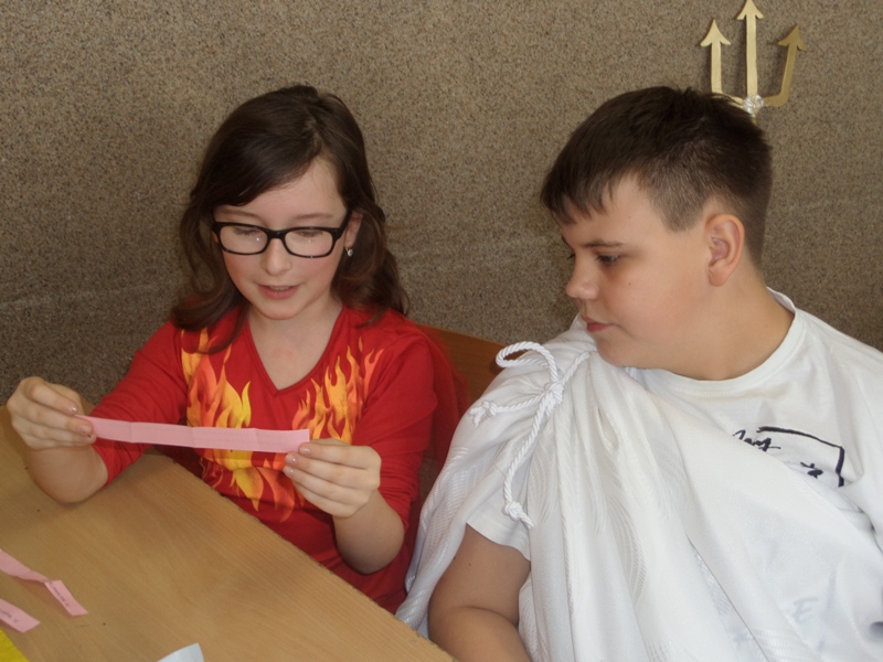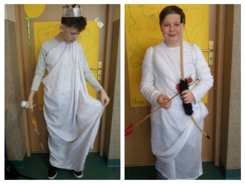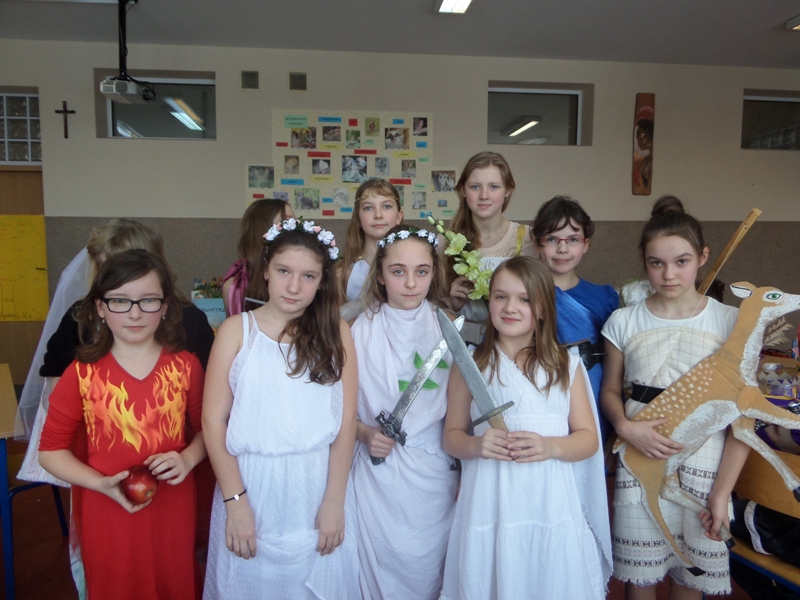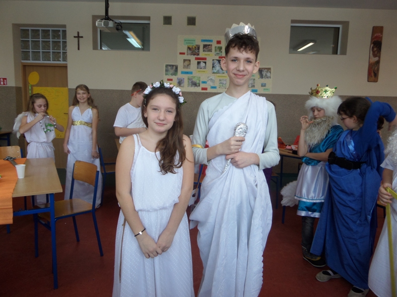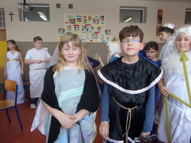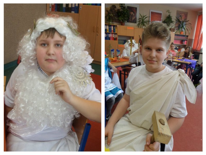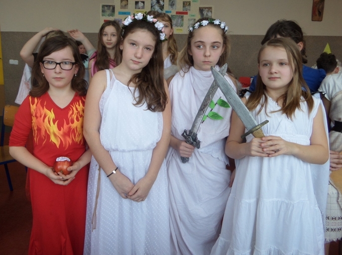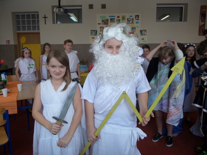 Uczniowie i uczennice popisali się bardzo rozległ± i wykraczaj±c± poza program wiedz± mitologiczn±. Wspaniale prezentowali się w kostiumach, które zaprojektowali i przygotowali - razem z Rodzicami oraz Dziadkami, którym serdecznie dziękujemy za zaangażowanie i pomoc!