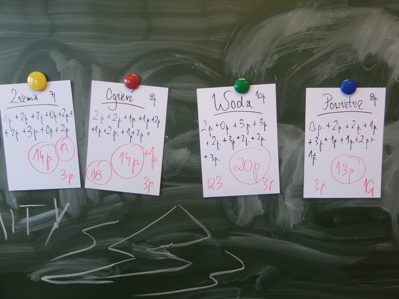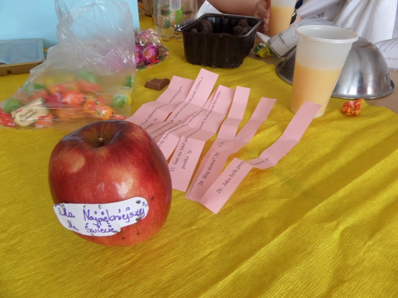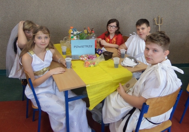 Uczta bogów olimpijskich poł±czona z konkursem wiedzy o mitach w klasie 5 "a" odbyła się 29 stycznia. Starły się ze sob± 4 drużyny: WODA, OGIEŃ, ZIEMIA I POWIETRZE. Walka była bardzo wyrównana, ale fortuna najbardziej sprzyjała żywiołowi wody. Uczestnikom/uczestniczkom dopisywały zarówno humory, jak i apetyty - pochłonięto takie ilo¶ci nektaru i ambrozji, jakich na Olimpie dawno już nie widziano.