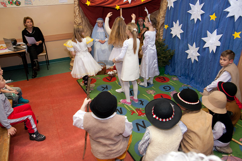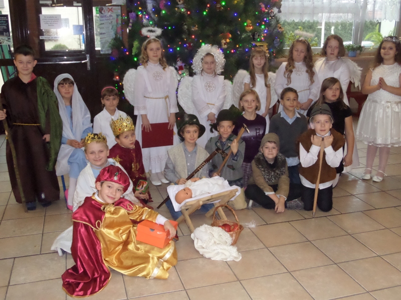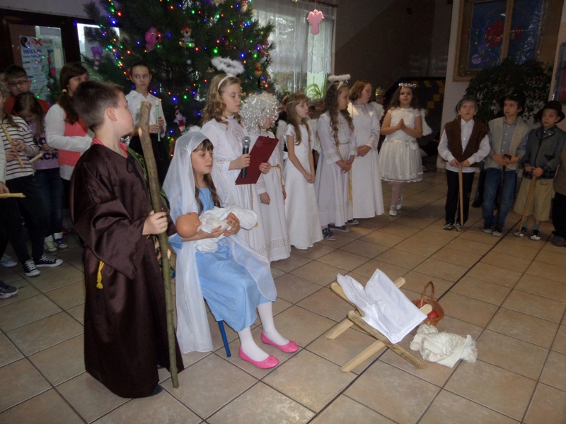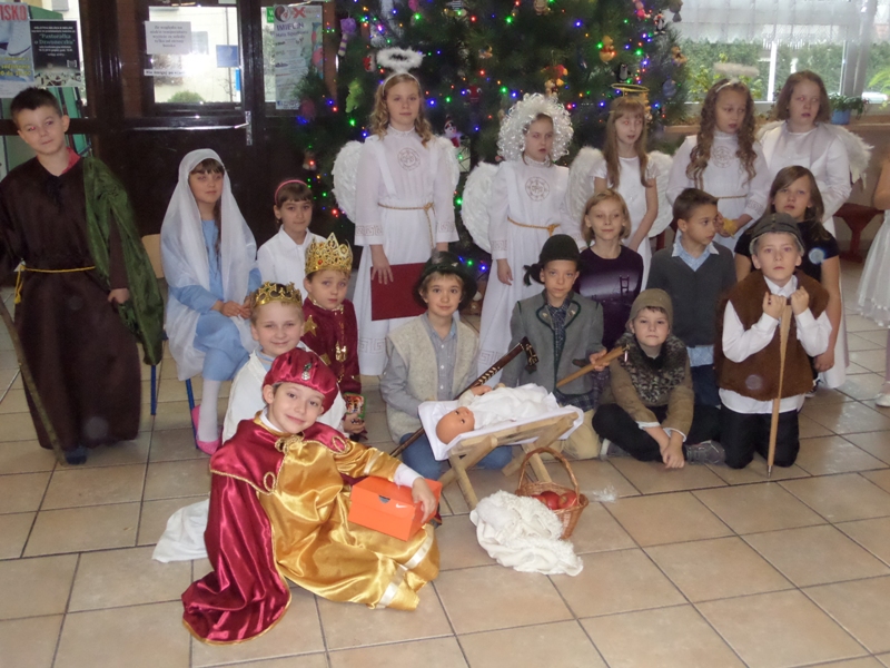 Tradycyjnie, jak co roku, odbyły się w naszej szkole jasełka. Tym razem przygotowała je klasa III "a" z wychowawczyni± p. Bożen± Piechot± i p. katechetk± Ann± Cyroń. Trzecioklasistów muzycznie wsparli starsi koledzy, podopieczni p. Krystyny Paluch, którzy odegrali na fletach kolędę https://www.youtube.com/watch?v=DBXQ2VnnhDo&feature=youtu.be. Z rado¶ci± odnotowujemy, że tradycja wspólnego kolędowania ma się w naszej szkole bardzo dobrze, a uczniowie i uczennice chętnie wł±czaj± się w ¶piewanie. Na zakończenie jasełek Pani Dyrektor złożyła naszym wychowankom serdeczne życzenia ¶wi±teczne.