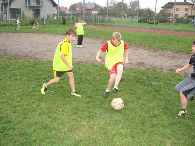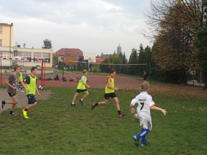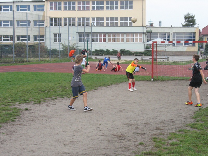 W my¶l tych słów Ojca ¶w., po modlitwie na rozpoczęcie, przyst±pili¶my do sportowej rywalizacji. W turnieju wzięli udział uczniowie klas IV-VI. Do rozgrywek przyst±piło pięć pięcioosobowych drużyn: „FC Ogórki”, „FC Koguty”, „Real Madryt”, „FC Berlinki” oraz zespół składaj±cy się z samych dziewcz±t – „Bez nazwy”. Poszczególne mecze były rozgrywane systemem „każdy z każdym”. Po dwugodzinnych zmaganiach wyłoniły się dwie najlepsze drużyny: „FC Berlinki” i „Real Madryt”. Z racji tego, że obie miały tak± sam± liczbę punktów, rozegrano pomiędzy nimi mecz finałowy. W regulaminowym czasie spotkanie nie zostało rozstrzygnięte, a więc drużyny przyst±piły do serii rzutów karnych. W nich lepsi okazali się zawodnicy „Realu Madryt” w składzie: Katarzyna Kowalska, Dawid Russek, Kacper Szwedo, Robert Synowiec, Bartosz Humski. Zwycięzcom serdecznie gratulujemy.
