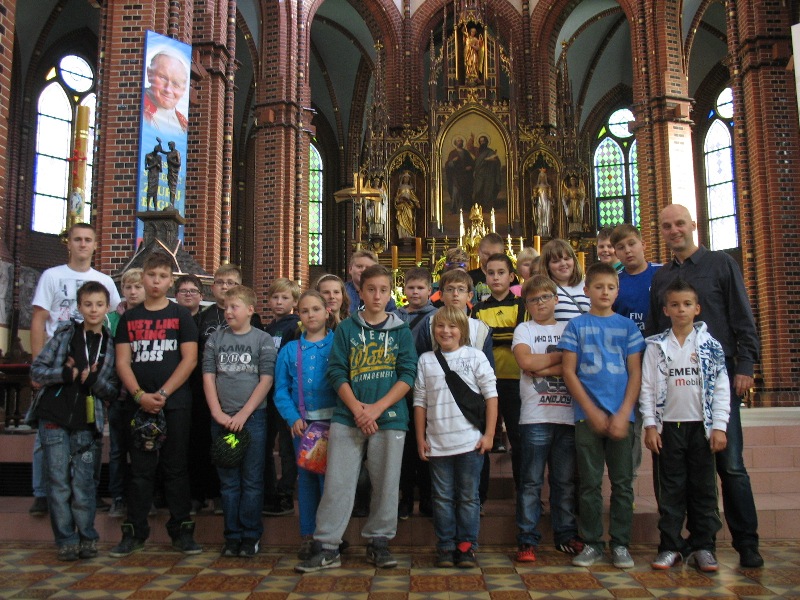 W minion± niedzielę (5 paĽdziernika) 28 uczniów z klas IV – VI , pod opiek± p. Marka D±browskiego, p. Piotra Klimczoka oraz p. Arkadiusza Borczyka, udało się na wycieczkę do Gliwic. Pierwszym miejscem „postoju” (jak przystało na niedzielę) była gliwicka Katedra. Na pocz±tku był czas na zwiedzanie, a póĽniej na wspóln± modlitwę. Następnie wszyscy wspólnie udali się na gliwicki stadion, gdzie z wysoko¶ci trybun mogli na żywo obejrzeć mecz piłkarskiej ekstraklasy pomiędzy Piastem Gliwice, a Mistrzem Polski – Legi± Warszawa. Mecz zapowiadał się arcyciekawie, tym bardziej, że w miniony czwartek warszawska Legia pokonała w ramach Ligi Europy w Tureckim Trabzonie miejscowy Trabzonspor. Mecz był na bardzo dobrym poziomie, emocji nie brakowało, a do tego ten wynik – 3:1 dla Piasta, który usatysfakcjonował cał± imielińsk±, szkolno-parafialn± grupę.