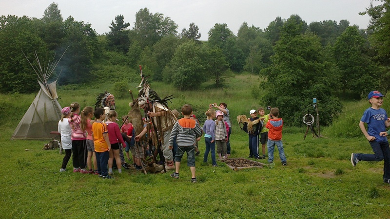 27 maja klasy pierwsze miały okazję odwiedzić wioskę indiańsk± "Arapaho" w Zalasie niedaleko Krzeszowic. Podczas wycieczki pierwszaki poznały historię Indian z plemienia Arapho, przede wszystkim jednak ¶wietnie się bawiły, zdobywaj±c nowe umiejętno¶ci. Nasi uczniowie mieli również okazję zaznać trochę ruchu i zmierzyć się z torem przeszkód z prawdziwego zdarzenia! Atrakcji nie brakowało, w¶ród nich odnotujmy: przej¶cie szlakiem zdobywców dzikiego zachodu, strzelanie z łuku do tatanki czy malowanie twarzy w barwy wojenne.