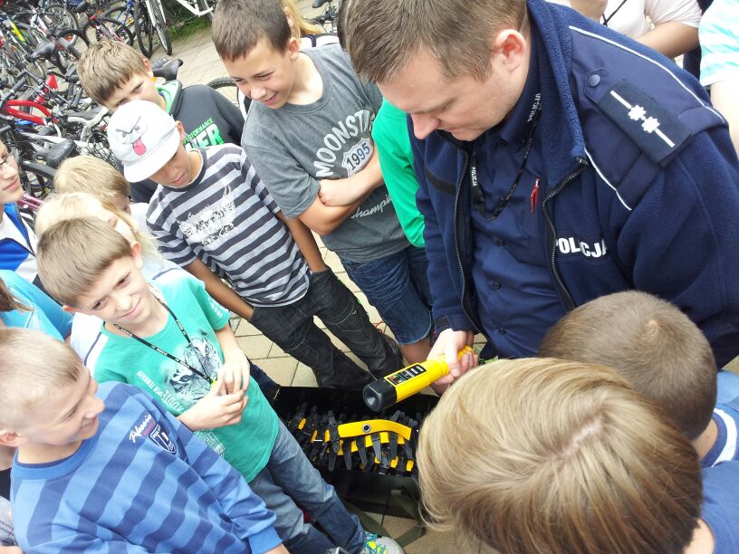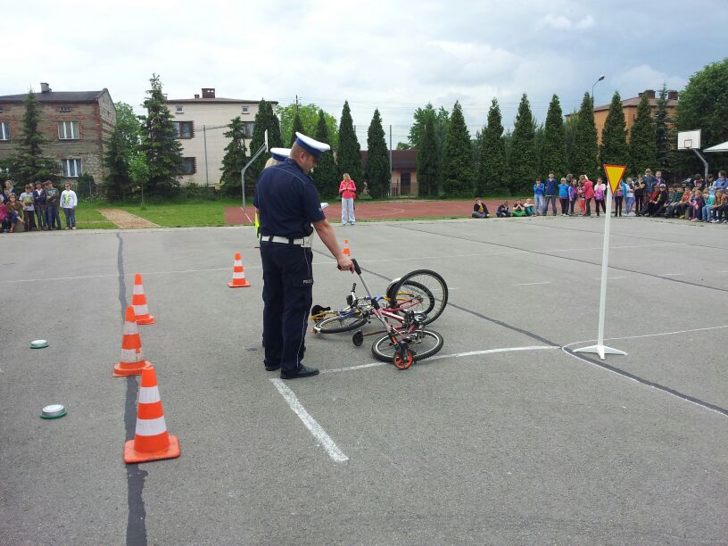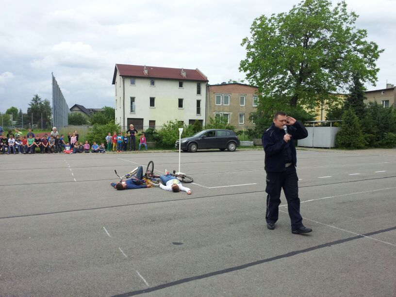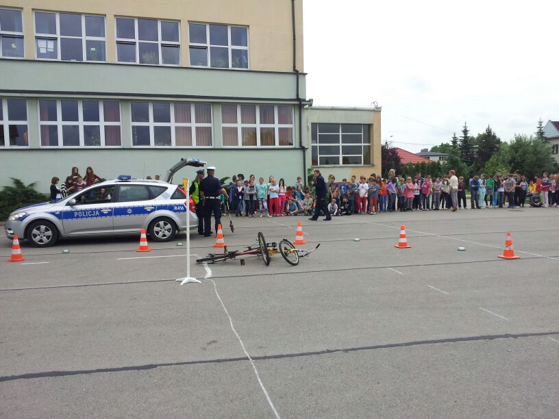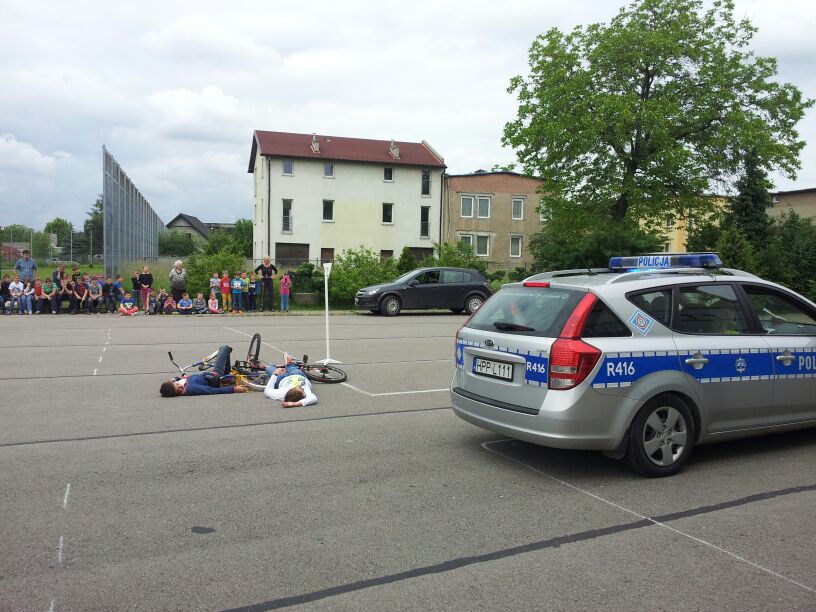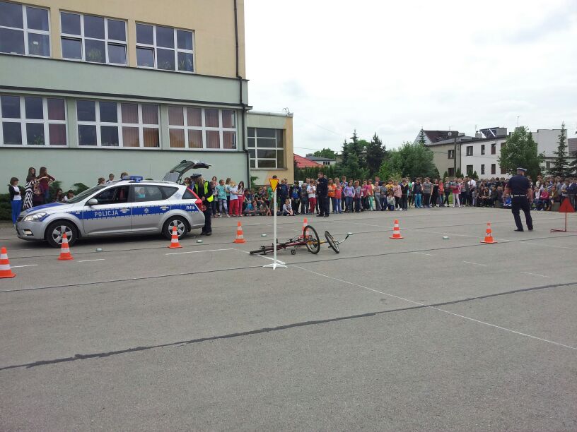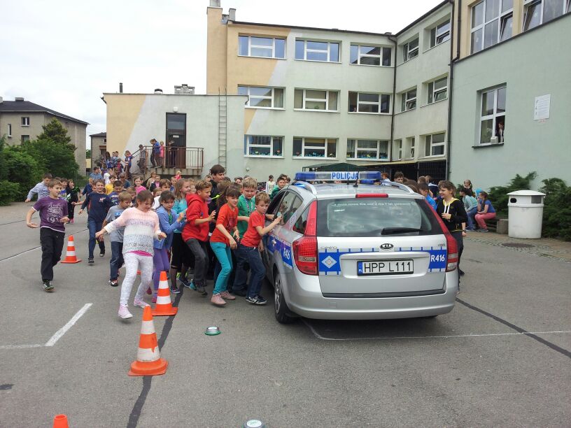 Policjanci z Komendy Powiatowej w Bieruniu dali dzisiaj prawdziwy popis swoich możliwo¶ci. Podczas spotkania z klasami 4-6 dobitnie przypomnieli o konieczno¶ci przestrzegania przepisów ruchu drogowego. Szczególny nacisk położyli na kwestię brawury - podkre¶lili, że ¶wiadczy ona wył±cznie o głupocie i nie jest żadnym powodem do dumy. W zaimprowizowanych scenkach z udziałem chłopaków z 6 "d" przypomnieli, jak postępować podczas wypadków i kolizji drogowych. Policjanci pochwalili się również swoim sprzętem oraz pojazdami. Szczególn± popularno¶ci± cieszył się nowoczesny radiowóz.