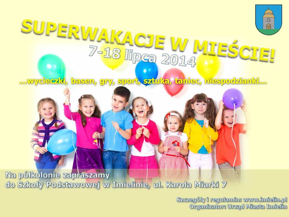 Zapraszamy serdecznie na tegoroczne "Wakacje w Mie¶cie" w imieniu Organizatora - Urzędu Miasta w Imielinie.
