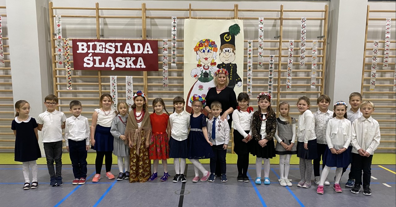 W naszej szkole było dziś świątecznie, gwarno i wesoło, a wszystko to za sprawą Biesiady Śląskiej, na którą zaprosiliśmy Brać Górniczą, a także Panią Dyrektor Dagmarę Kupczyk i Panią Wicedyrektor Halinę Stolecką. Jest to już nasza II Biesiada Śląska, która wieńczy Tydzień Śląski, podczas którego uczniowie poznają śląskie tradycje, zwyczaje i gwarę. Uczą się regionalnych piosenek i tańców, wykonują różne prace plastyczne - np. malują prawdziwe śląskie szlajfy. Wszyscy przygotowują też wystawę śląskich „perełek” - pamiątek znalezionych w szufladach rodziców i dziadków. Korytarz szkolny zdobią regionalne dekoracje, przypominające o tym, co dla mieszkańców Śląska jest piękne i ważne, bez względu na upływ czasu.