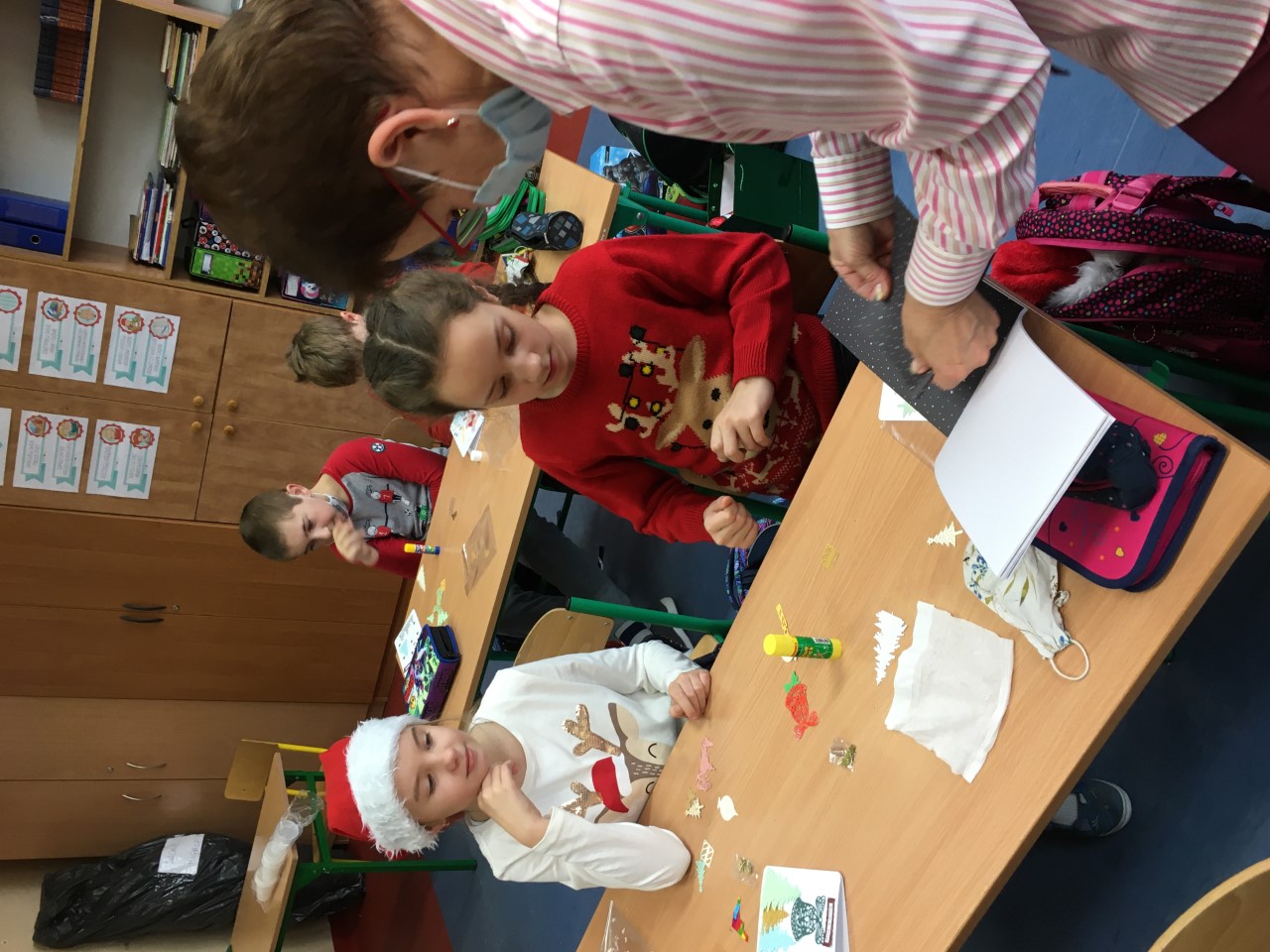 Dzieci dużo się nauczyły, m.in.: jak układać kompozycje świąteczne na kartce, jak rozmieszczać poszczególne elementy na kartce oraz jak je dopasowywać kolorystycznie do danej kartki.