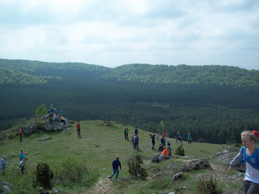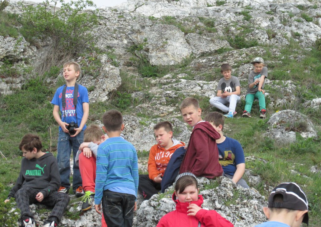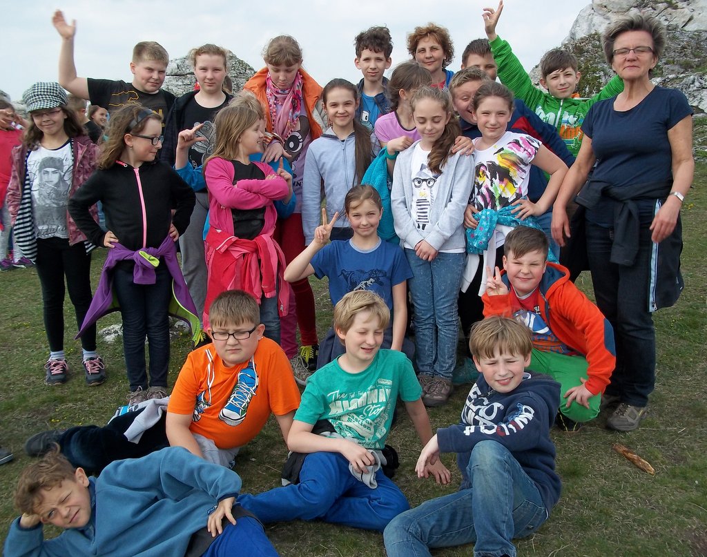 Za nami dwa niezapomniane dni w Jurze Krakowsko - Częstochowskiej. Nasz± przygodę pod znakiem ekologii i historii rozpoczęli¶my nieopodal góruj±cych nad Olsztynem ruin warownego zamku królewskiego z XIV wieku. Zamieszkali¶my w nowym i komfortowo wyposażonym hotelu z widokiem na zamkowe wzgórze. Ogl±danie zamku odłożyli¶my jednak do wieczora, aby zwiększyć szanse spotkania zamkowych duchów, a na pocz±tek wybrali¶my się do kamieniołomu „Kielniki”. W nieczynnym kamieniołomie, który odsłonił wnętrze wapiennego wzgórza, można zobaczyć skamieniało¶ci - g±bki i amonity - oraz zapoznać się z geologiczn± budow± terenu. Jednak największ± atrakcj± okazała się możliwo¶ć samodzielnego odłupywania fragmentów skał za pomoc± młotków, w które zaopatrzył nas przewodnik. A kiedy dowiedzieli¶my się, że w kamieniołomie można natrafić też na rudy srebra poczuli¶my się jak poszukiwacze Eldorado. Żyły srebra niestety nie odnaleĽli¶my, ale i tak łupy były bogate i niektórzy zabrali do domu spore fragmenty morskich osadów. Po obiedzie znowu wyruszyli¶my na szlak, tym razem do Jaskini NiedĽwiedziej, która została tak nazwana, gdyż odnaleziono w niej szcz±tki niedĽwiedzi jaskiniowych. Ma ona długo¶ć 47 m a jej pocz±tkowy odcinek to 30 metrowy w±ski, do¶ć stromy, ¶liski i nieo¶wietlony korytarz. Przej¶cie nim wywołało wiele emocji i skutkowało niezaplanowanymi k±pielami błotnymi. Po zmianie ubrań i zjedzeniu kolacji czekały nas kolejne atrakcje w ruinach zamku. Poznali¶my legendę, wedle której przy pełni księżyca słychać dochodz±ce z podziemi odgłosy. Maj± to być zawodzenia Białej Damy, narzeczonej starosty Albrechta, która w dniu ¶lubu niechc±cy uruchomiła ukryt± zapadnię, wpadła do zamkowych lochów i tam zmarła z głodu. Ducha co prawda nie zobaczyli¶my, ale zamek i widoki jakie się z niego roztaczały zrobiły na nas duże wrażenie. Drugi dzień wycieczki rozpoczęli¶my od wspinaczki na Górę Biakło nazywan± też Małym Giewontem, sk±d udali¶my się do Złotego Potoku. Nasza trasa wiodła przez rezerwat krajobrazowy „Parkowe”, w którym ogl±dali¶my wiele interesuj±cych miejsc takich jak: Jaskinia NiedĽwiedzia (już druga), ¬ródełko Spełnionych Marzeń, staw Sen Nocy Letniej, skała Diabelskie Mosty czy Ľródła Wiercicy. Przewodnicy opowiadali ciekawe historie o każdym z tych miejsc i pokazywali rzadkie ro¶liny występuj±ce na terenie rezerwatu. Podziwiali¶my m. in. marzankę wonn±, czosnek niedĽwiedzi i szczawik zajęczy. Wizyta w pstr±garni była ostatnim punktem programu. Po posiłku wyruszyli¶my w drogę do Imielina, gdzie czekali stęsknieni rodzice.