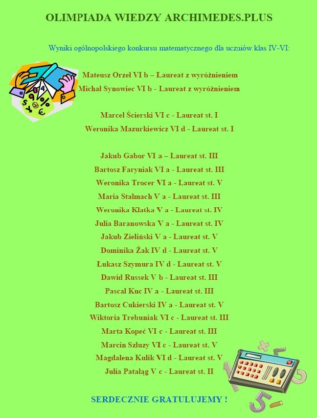 W konkursie plastycznym pierwsze miejsce zdobył Kay Dziędziel ze Szkoły Podstawowej nr 3 w Bieruniu, drugie Paulina Borys z SP 1 w Lędzinach, a trzecie Agnieszka Malicka z SP w Imielinie. Organizatorzy przyznali wyróżnienia dla Magdaleny Malinowskiej i Victorii Paluch z SP w Imielinie.