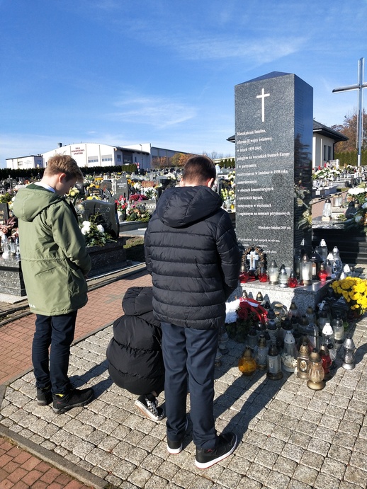 W ramach akcji MEN "Szkoła pamięta" członkowie samorządu uczniowskiego naszej szkoły wraz z opiekunem, odwiedzili imieliński cmentarz, gdzie zapalili znicz przy pomniku pamięci ofiar II wojny światowej - mieszkańców Imielina i najbliższej okolicy.