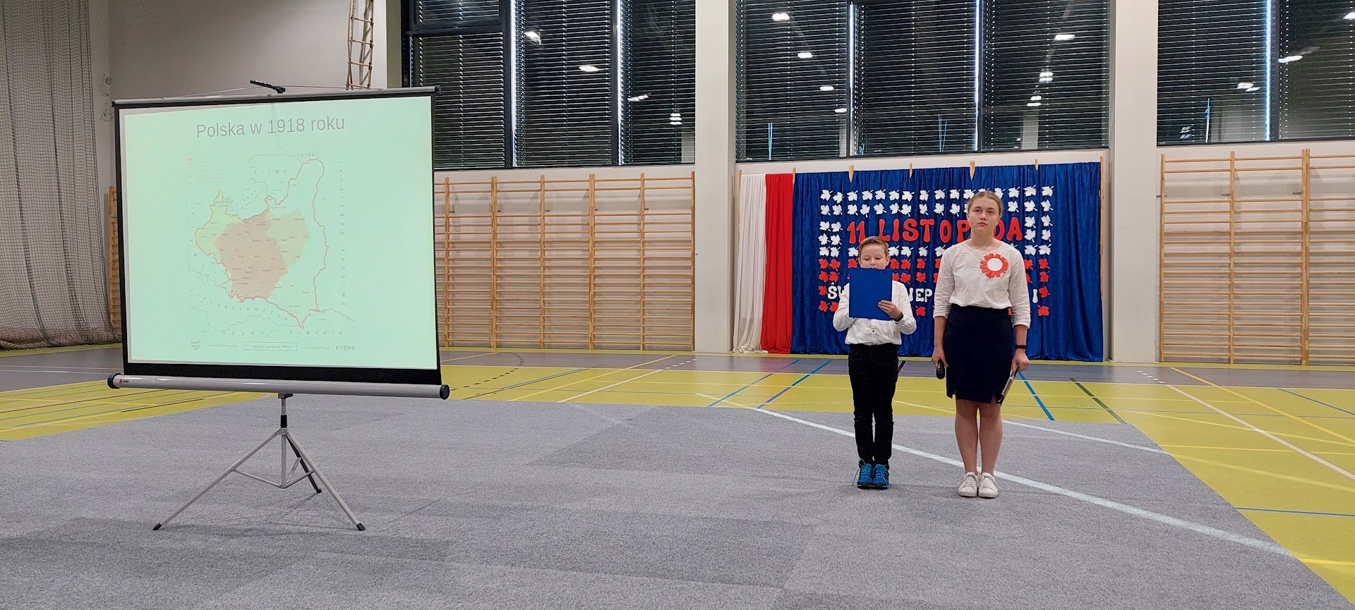 W dniu 10 listopada 2021 roku odbyła się w naszej szkole uroczysta akademia z okazji 103 rocznicy odzyskania przez Polskę niepodległości. Tegoroczną uroczystość wypełniły patriotyczne pieśni, utwory instrumentalne oraz wiersze. Dopełnieniem całego programu była multimedialna prezentacja ukazująca drogę Polaków do niepodległości.