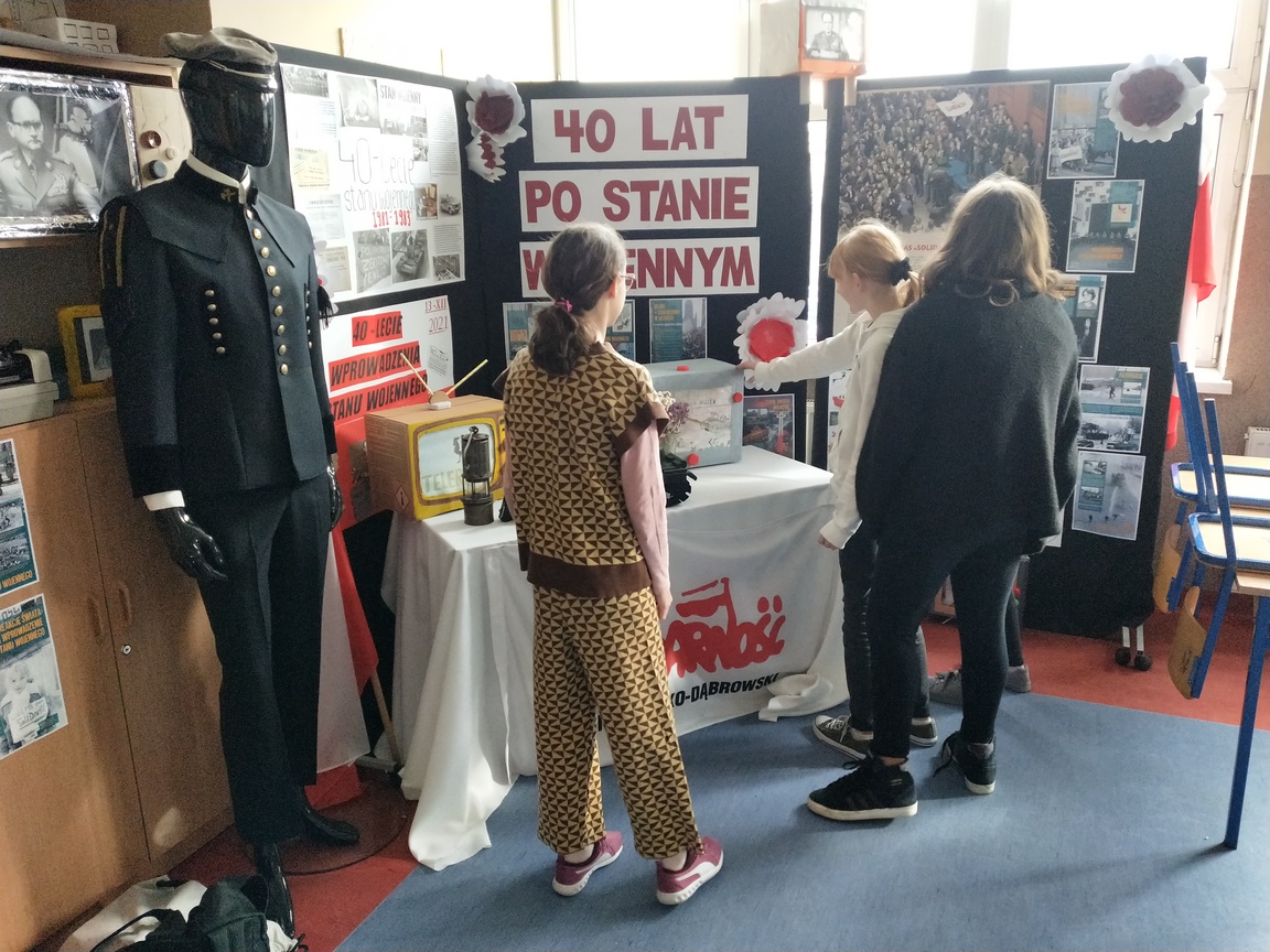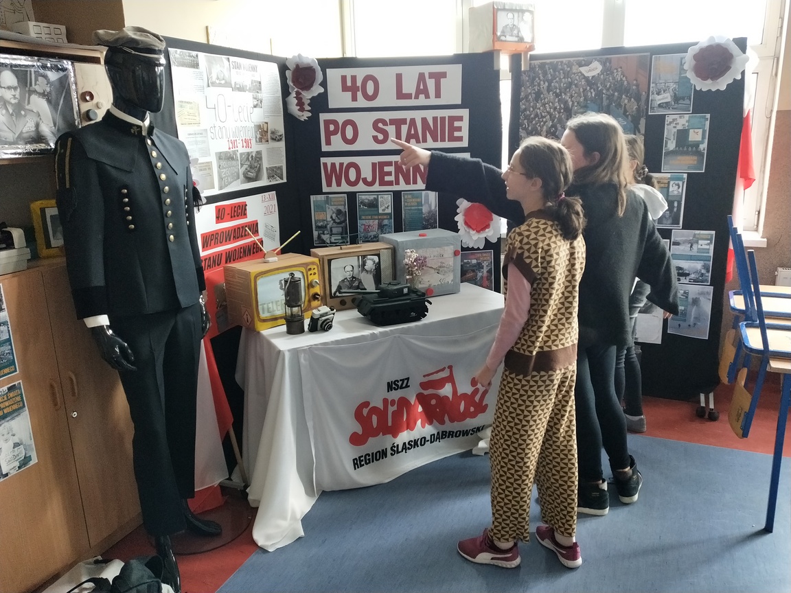 Aktualnie w naszej szkole można oglądać wystawę ilustrującą czasy stanu wojennego w Polsce, przygotowaną przez IPN w Katowicach. Okolicznościowe plakaty znajdują się na parterze szkoły, natomiast wersja elektroniczna jest udostępniona na monitorze przy wejściu do szatni na pierwszym piętrze.