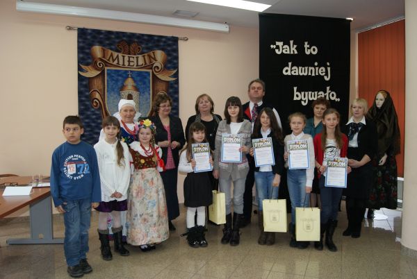 W tym dniu w odbyła się również wystawa prac malarskich – konkurs „Jak to dawnij bywało” miał bowiem dwie odsłony – recytatorsk± i plastyczn±. Oceny konkursowych dzieł dokonało jury w składzie: p. Elżbieta Zrobek, p. Urszula Figiel –Szczepka oraz p. Krystyna Paluch. Przyznano następuj±ce wyróżnienia: - w I kategorii wiekowej klasy I – III - 1. Kinga ¦wiergot (SP nr 3 z Oddziałami Integracyjnymi im. Orła Białego w Bieruniu). 2. Sebastian Grzesica (SP nr 3 z Oddziałami Integracyjnymi im. Orła Białego w Bieruniu). 3. Zuzanna Klimczok (SP im. Kard. St. Wyszyńskiego w Imielinie, praca wykonana pod kierunkiem p. M .Syrek). Wyróżnienia: Julia Kobiór (SP nr 3 z Oddziałami Integracyjnymi im. Orła Białego w Bieruniu) i Weronika Kusber (SP z Oddziałami Integracyjnymi nr 1 im. K. Miarki w Lędzinach). W II kategorii wiekowej klasy IV – VI: 1. Maria Paluch (SP im. Kard. St. Wyszyńskiego w Imielinie - praca wykonana pod kierunkiem p. K. Paluch). 2. Patrycja Stolorz (SP im. F. Adamskiego w Chełmie ¦l±skim). 3. Zuzanna Malinowska (SP im. Kard. St. Wyszyńskiego w Imielinie - praca wykonana pod kierunkiem p. K. Paluch).Wyróżnienia: Natalia Nowak (SP nr 1 z Oddziałami Integracyjnymi w Bieruniu) i Bartosz ¦cierski (SP im. Gawlikowicza w Bojszowach).
