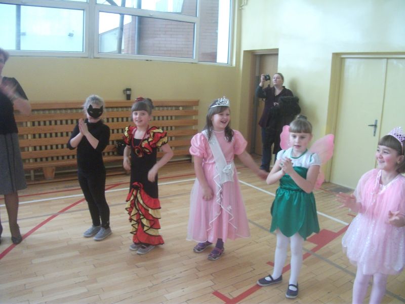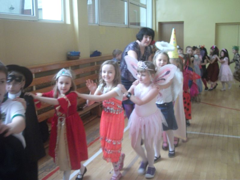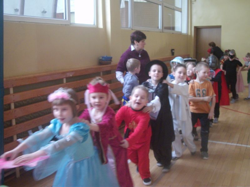 Coroczny bal karnawałowy dla młodszych klas to wyczekiwany czas rado¶ci i zabawy. To wła¶nie podczas balu karnawałowego spełniaj± się wszystkie marzenia i każde dziecko może wcielić się w postać z bajki. W ostatnich dniach karnawału sala gimnastyczna zamieniła się w zaczarowan± krainę pełn± wróżek, motylków, rycerzy i innych znanych postaci z bajek i kreskówek. Zorro tańczył z księżniczkami, aniołami, rycerze, królewny i diabełki w towarzystwie wróżek, marynarza, kotków, wojowników Ninja bawili się w takt modnych przebojów. Przedstawiciele wszelkich służb mundurowych w towarzystwie biedronek, supermana, słodkich księżniczek i groĽnych piratów bawili się ¶wietnie! Każdy był jedyny, niepowtarzalny i – co najważniejsze – zadowolony! Pomiędzy konkurencjami i tańcami dzieci częstowały się przygotowanymi dla nich słodko¶ciami i napojami. Dobra zabawa i wspaniały humor towarzyszyły uczniom przez cały bal.