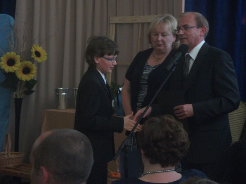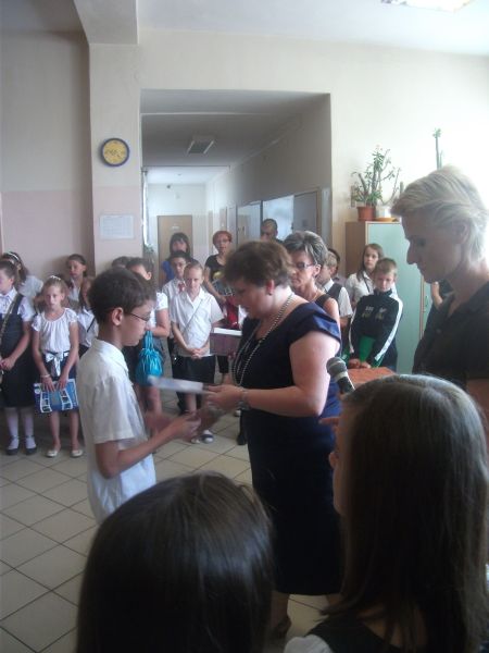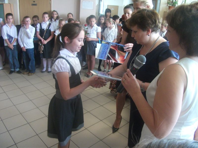 za ¶redni± powyżej 5,0. Specjalnym laurem uhonorowany został Łukasz Wcisło, który w minionym roku szkolnym wygrał prestiżowe kuratoryjne konkursy przedmiotowe. Pochwała należy się jednak wszystkim tegorocznym absolwentom. Na sprawdzianie szóstoklasisty uzyskali oni bardzo wysokie wyniki, które uplasowały ich znacznie powyżej ¶redniej wojewódzkiej i krajowej.