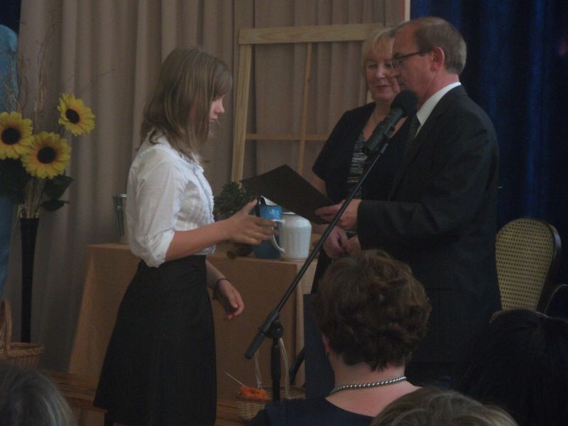 Po przedstawieniu rozdano nagrody laureatom konkursów przedmiotowych.