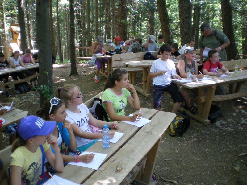 Program warsztatów był bardzo napięty. Zaczęło się od edukacyjnej wycieczki górskiej, na zakończenie której dzieci rozwi±zywały quiz przyrodniczy i malowały… ziemi±!