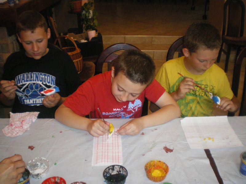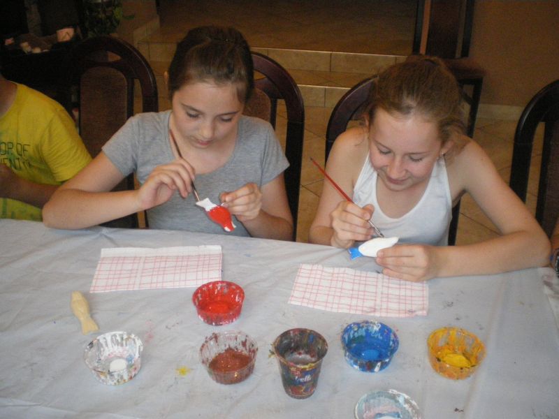 Po przybyciu do „Jedrusia” pi±toklasi¶ci zażyli wodnych rozrywek, po czym udali się na zajęcia warsztatowe, podczas których tworzyli zabawki ze słomy i malowali drewniane figurki ptaków. Zajęcia okazały się tak bardzo niezwykłe i wci±gaj±ce, że udział w nich postanowili wzi±ć również nauczyciele, którzy także wykonali swoje „arcydzieła”, ku uciesze dzieci.